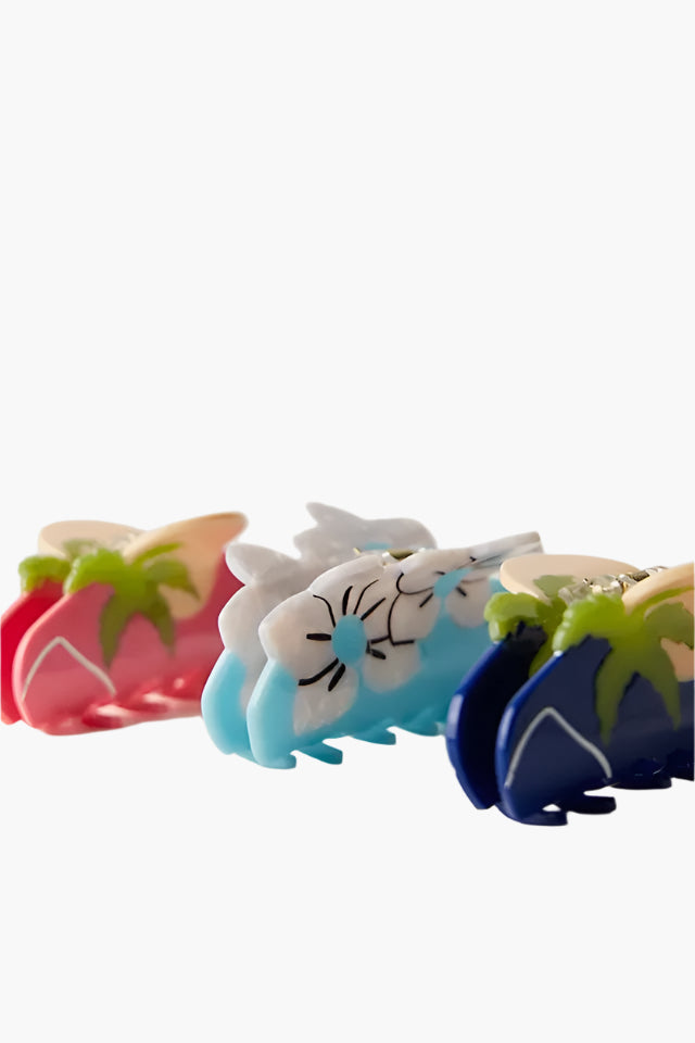 مشبك مخلب مطبوع عليه زهرة باللون الأسود/الأزرق المخضر - ليلاً ونهارًا
