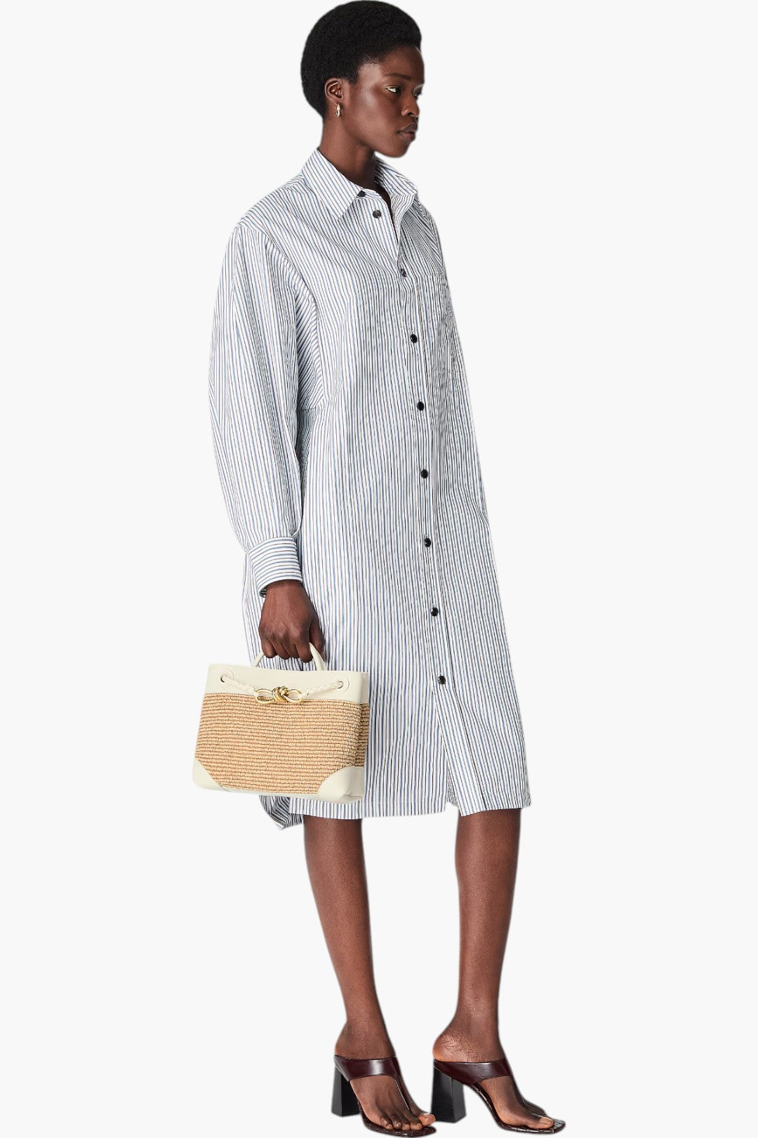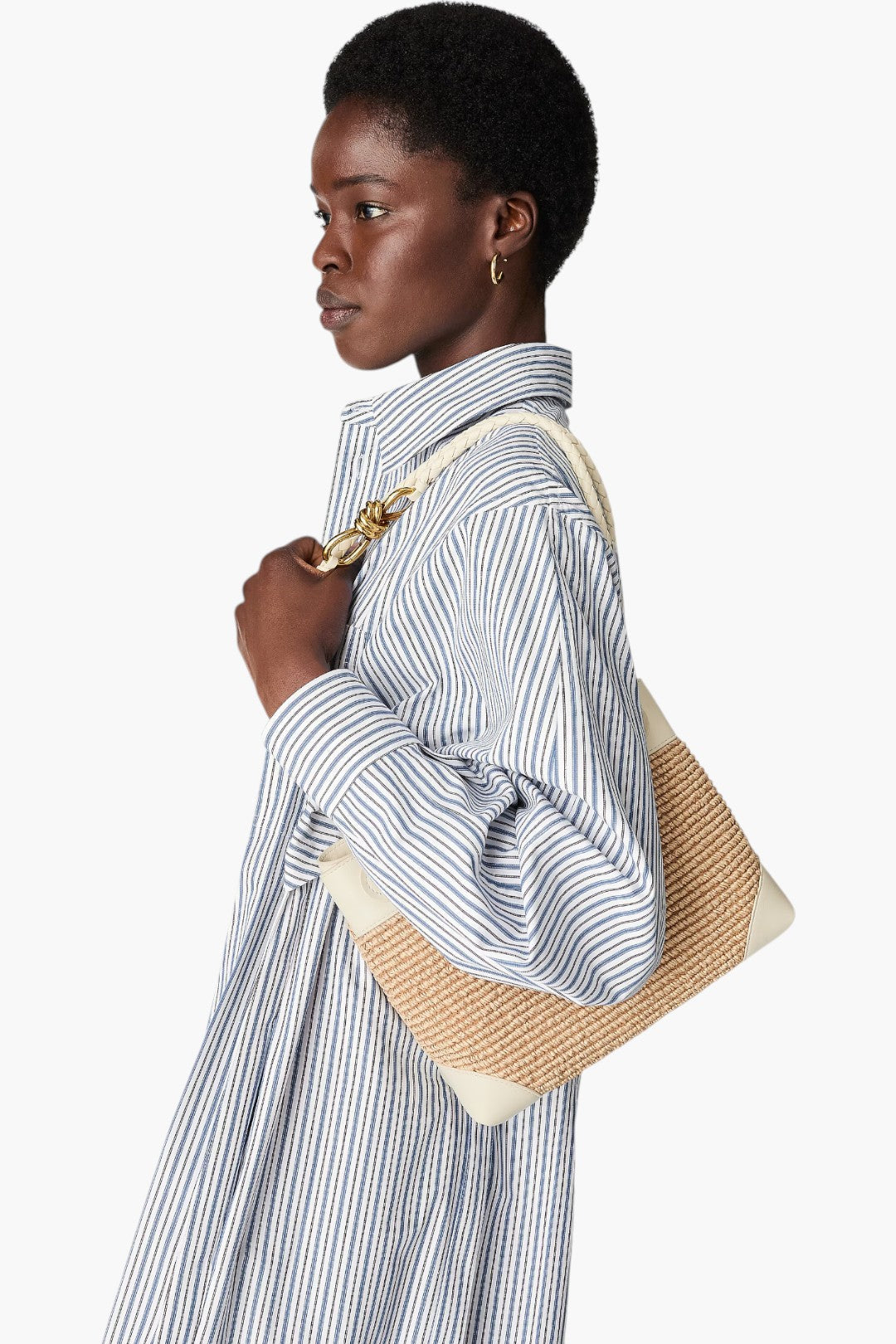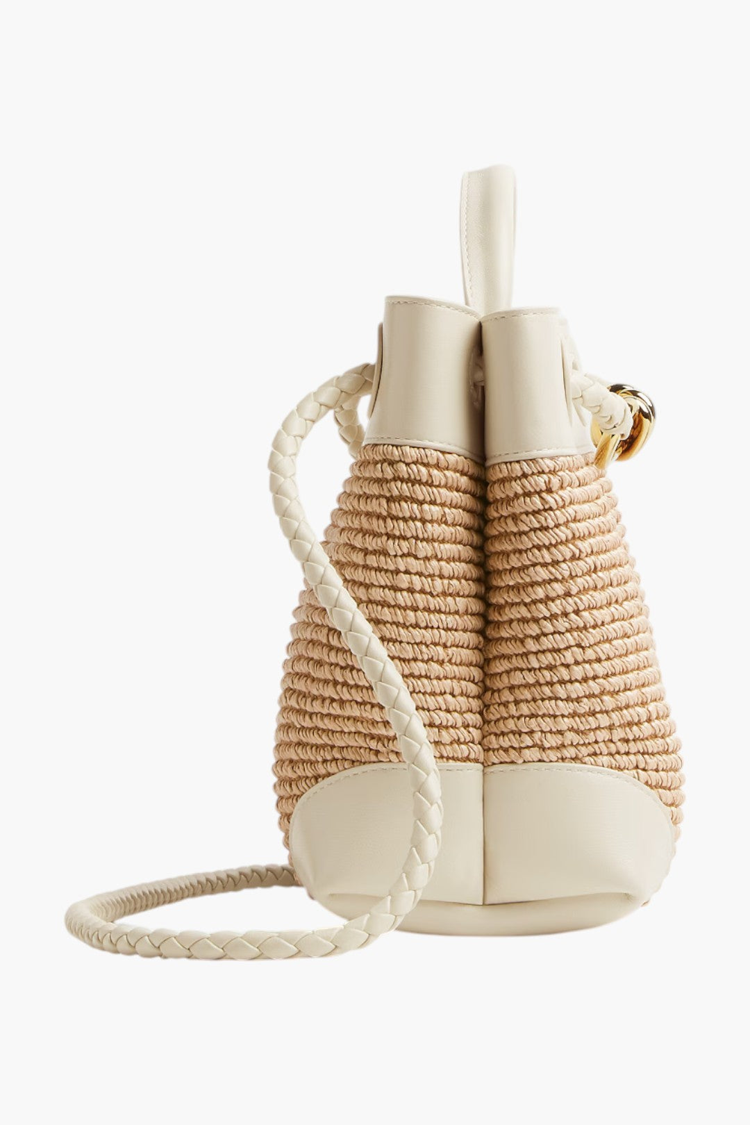 حقيبة صغيرة من الرافيّا تورشون ومقبض علوي من الجلد مع حزام منزلق للحمل عبر الجسم