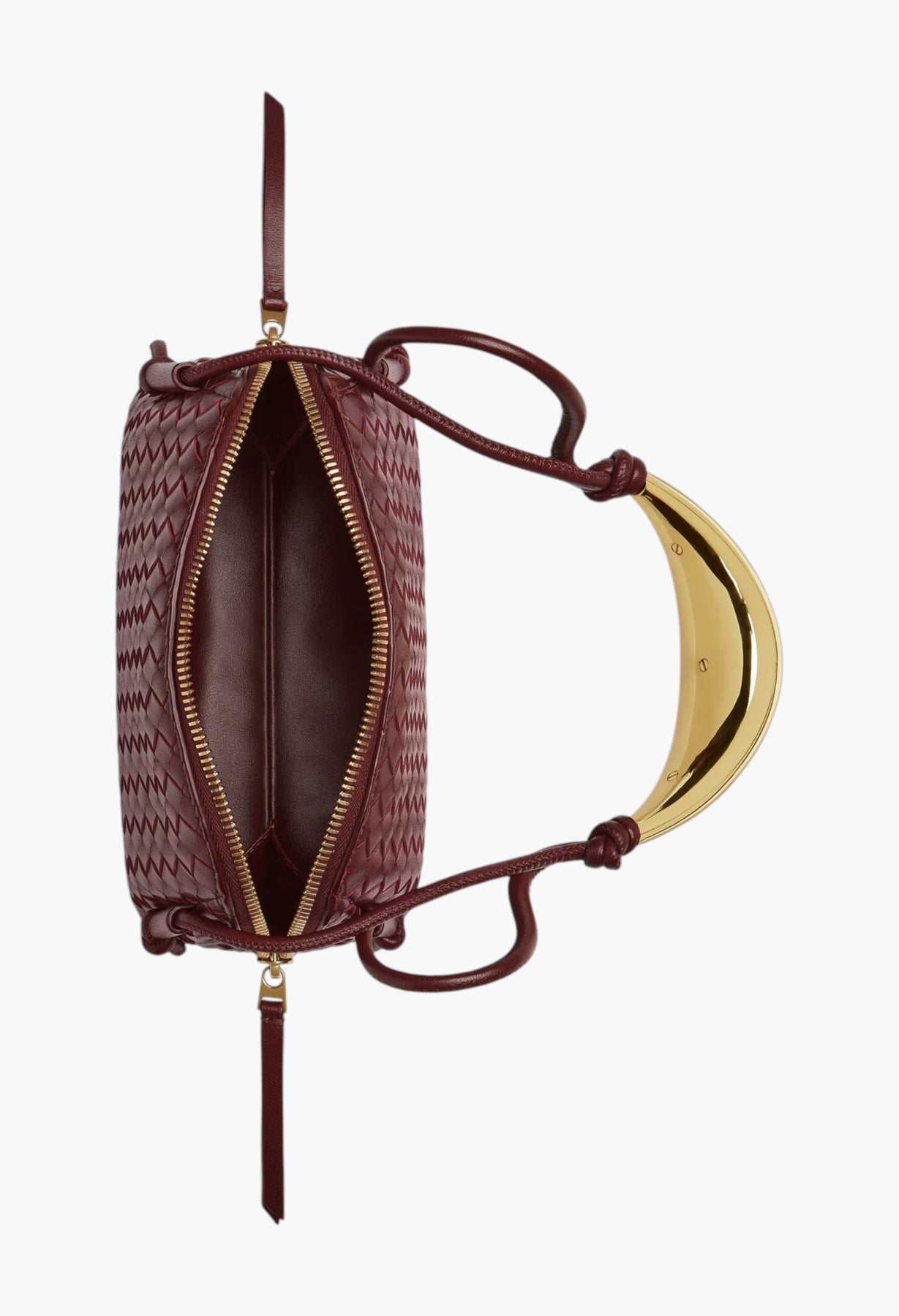 حقيبة مصنوعة من جلد النابا المجدول مع مقبض معدني منحوت.