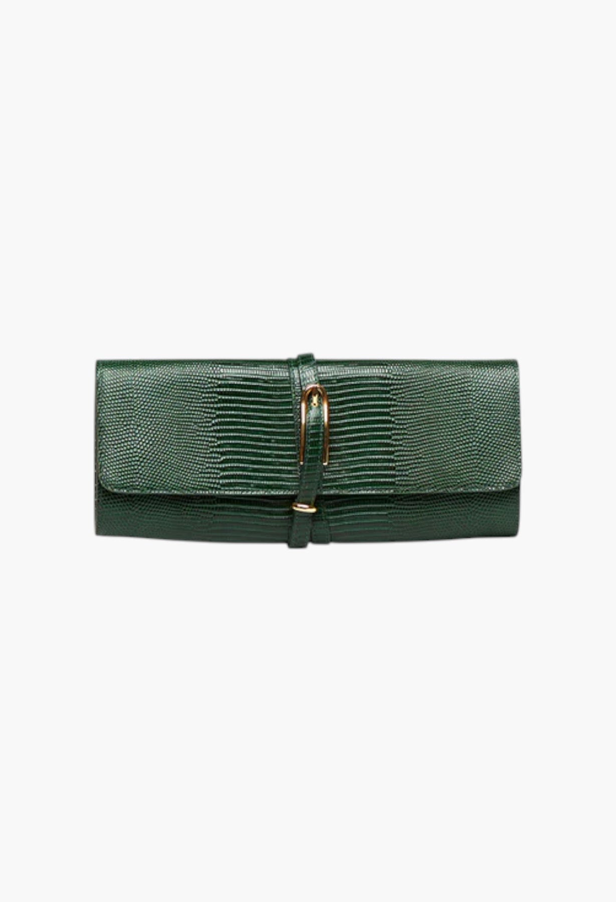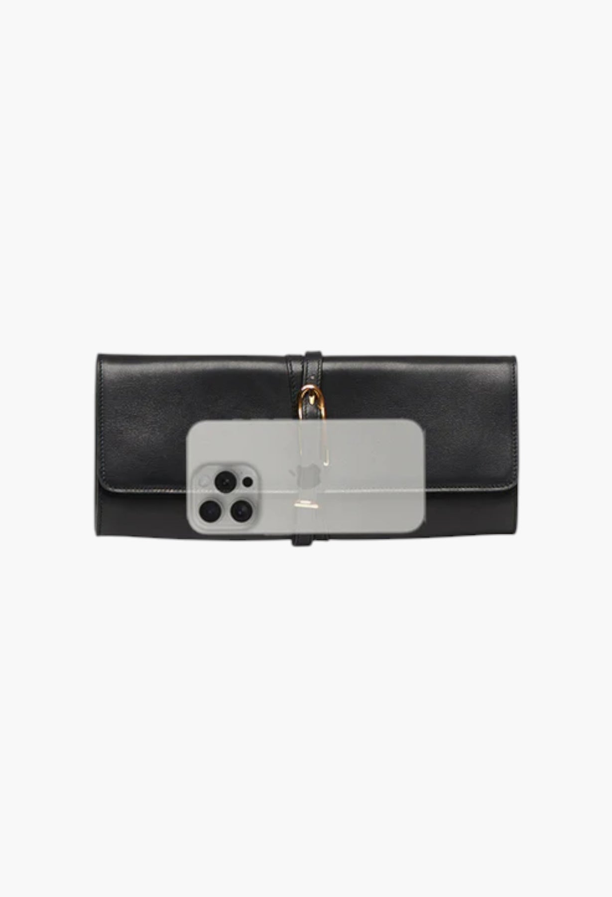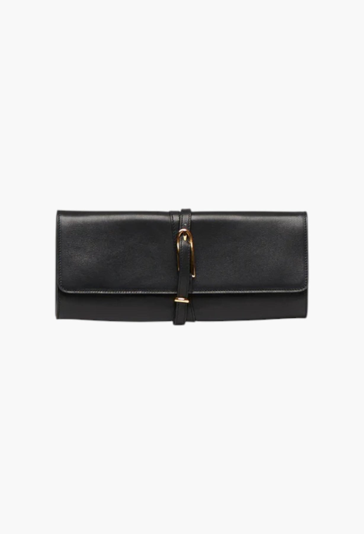 حقيبة كلاتش أنيقة وصغيرة الحجم، تتميز بقفل مزدوج بحزام وإبزيم مميز. حجمها مثالي للضروريات، وهي الخيار الأمثل لنزهات المعارض، ولقاءات القهوة، والنزهات المسائية.