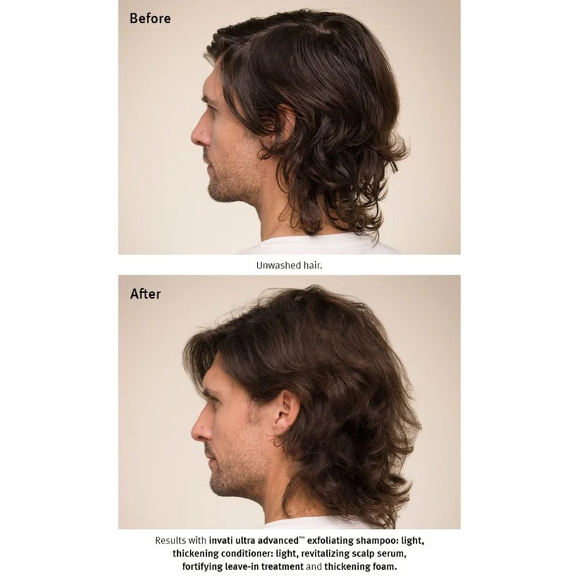 احصلي على مظهر شعر أكثر كثافة وامتلاءً من الجذور حتى الأطراف باستخدام رغوة Aveda Invati Ultra Advanced Thickening Foam (150 مل).
