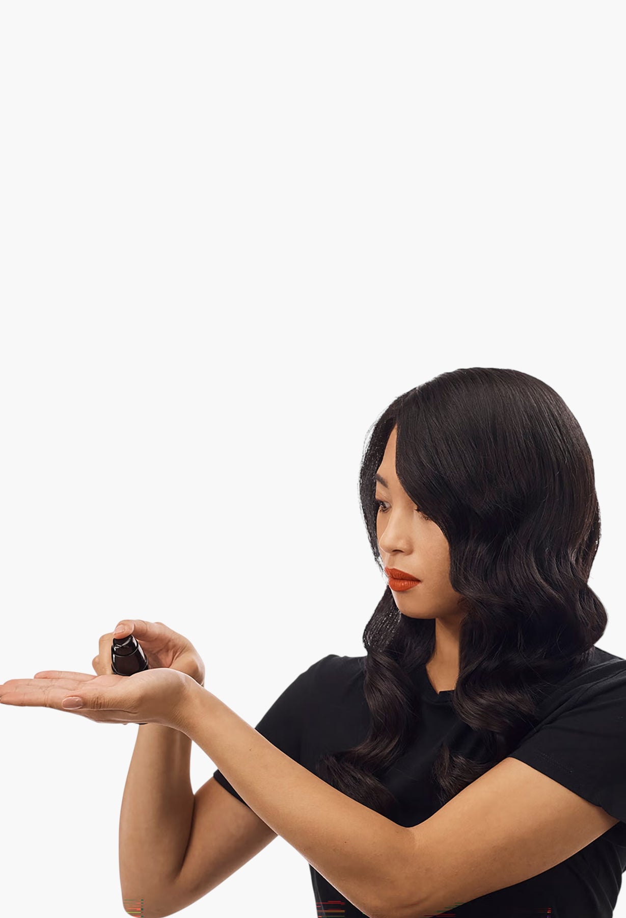 إذا كان شعركِ ناعمًا إلى عاديًا، ضعي ضغطة واحدة من السيروم في راحة يديكِ النظيفتين، أما إذا كان شعركِ كثيفًا أو خشنًا، فاستخدمي ضغطة ونصف. دلكي بين راحتي يديكِ وأصابعكِ حتى يُغطى الشعر بالتساوي، ثم وزعيه على منتصف طول الشعر وأطرافه، مع تجنب منطقة الجذور.