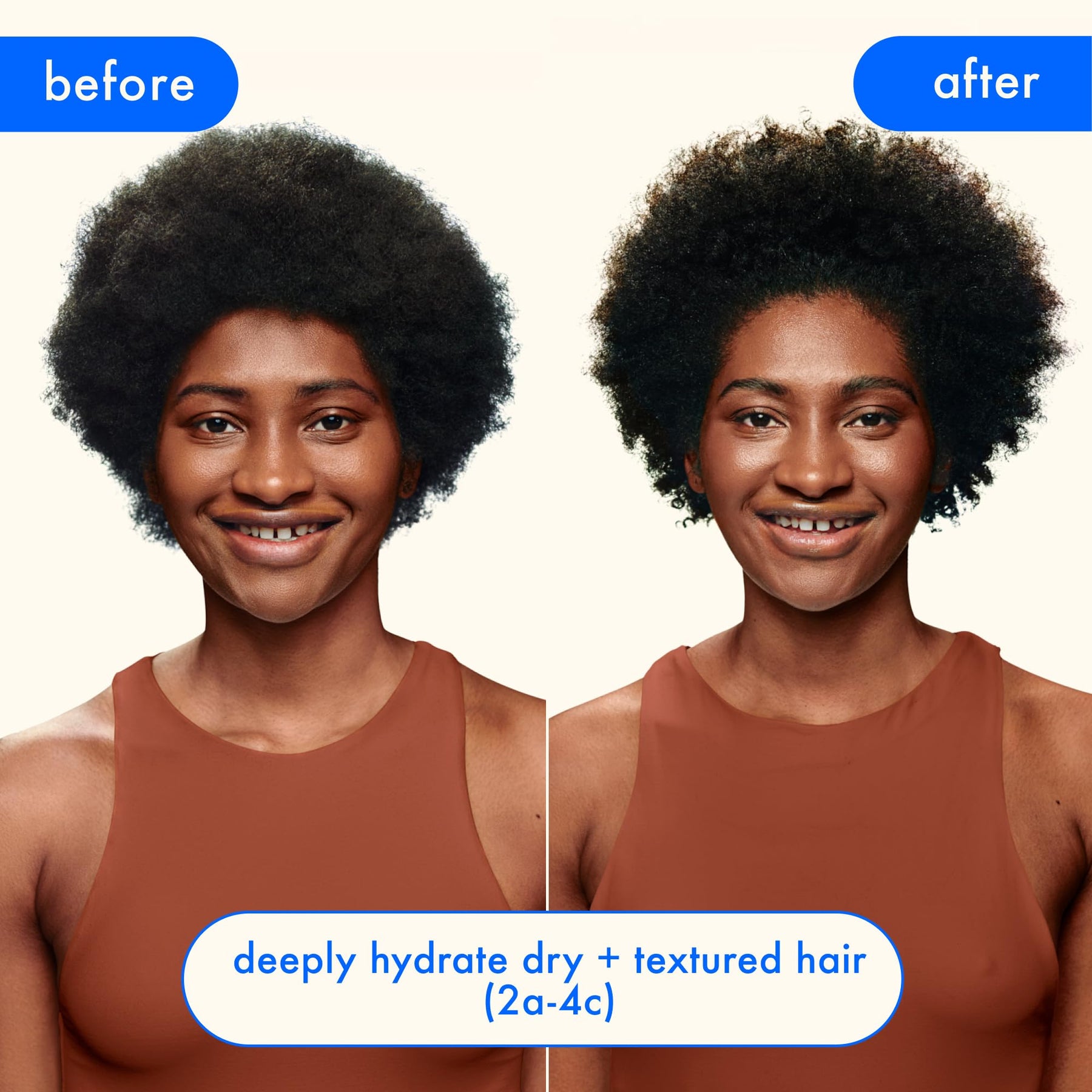 مثالي للشعر المتوسط ​​إلى الكثيف ذي الملمس المموج أو المجعد أو الملتف، توفر هذه التركيبة المخفوقة ترطيبًا مكثفًا وتساعد على فك تشابك الشعر. مصنوع من السكوالين (لمنع فقدان الرطوبة واستعادة ليونة الشعر)، وحمض الهيالورونيك (الذي يُغذي الشعر الجاف بجذب الرطوبة)، وماء جوز الهند المخمر بيولوجيًا (مصدر طبيعي للترطيب). هذا القناع الذي يستغرق خمس دقائق هو مفتاح صحة الشعر، بنتائج مختبرة سريريًا تدوم حتى خمسة أيام.