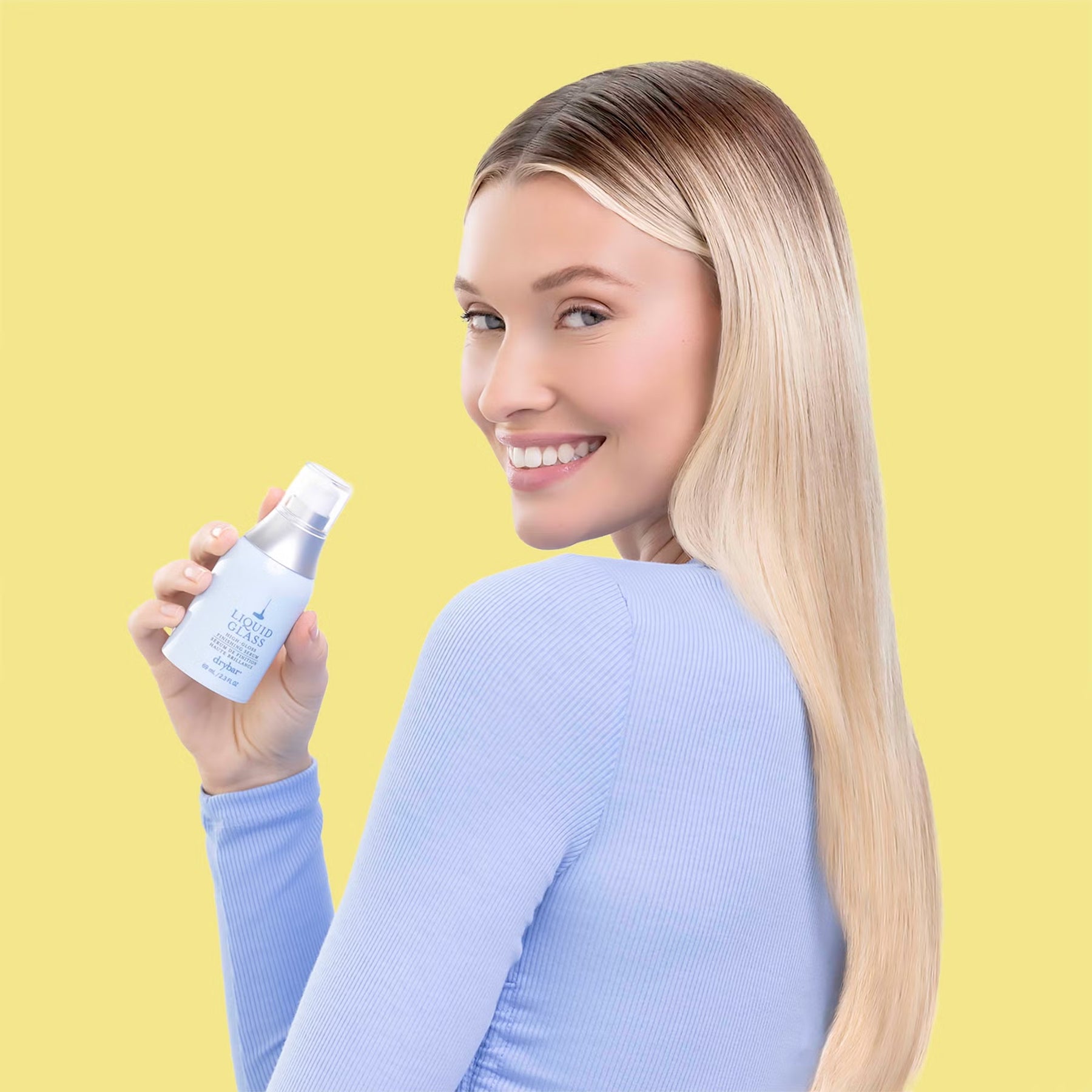 احصلي على تسريحات عارضات الأزياء باستخدام سيروم Drybar Liquid Glass Finishing Serum (69 مل)، الذي يساعد على تغطية الشعر بترطيب خفيف ولمعان عاكس.