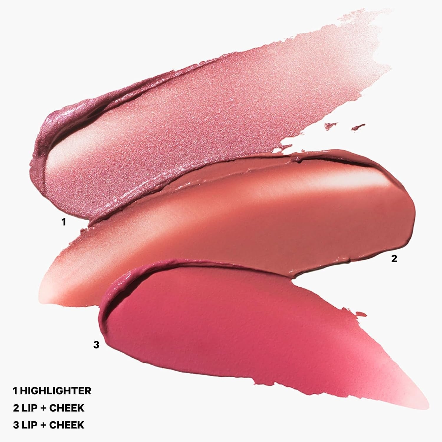 مجموعة قيمة تحتوي على قلم تمييز بالحجم الكامل واثنين من ألوان أحمر الخدود الكريمي + أحمر الشفاه التي تمتزج بسهولة للحصول على لون طبيعي.