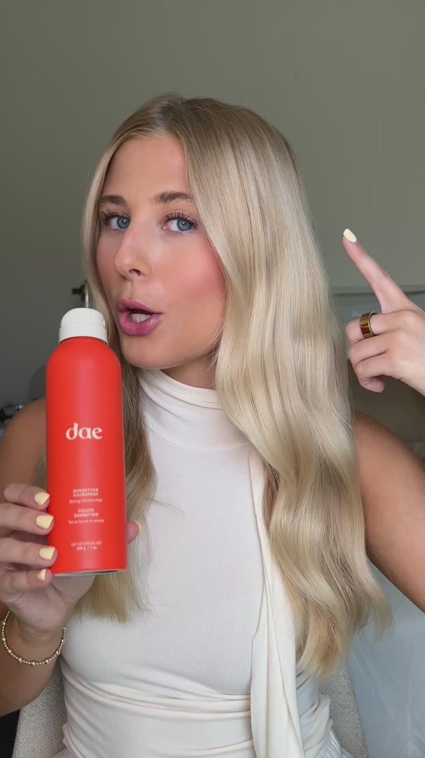 امسكيها على بعد 8-10 بوصات ثم رشيها بالتساوي على الشعر الجاف والمصفف.
