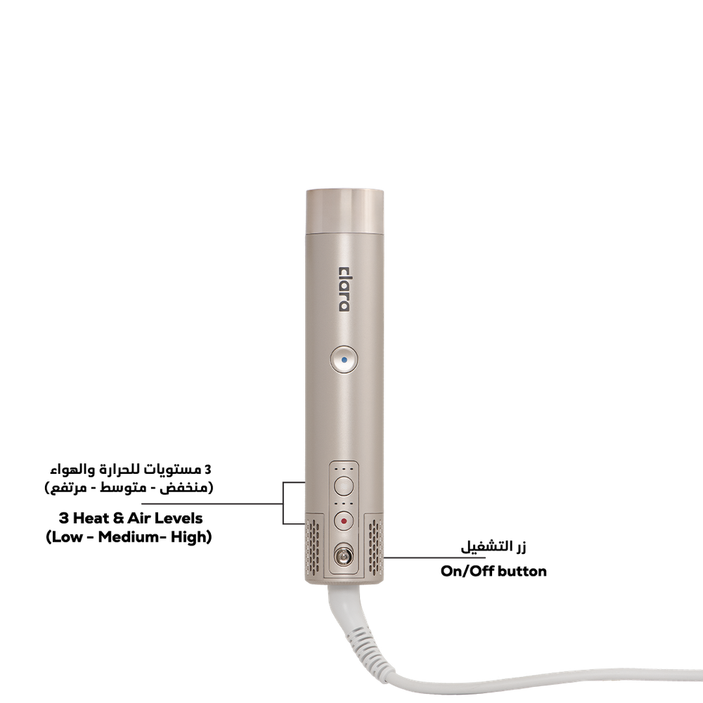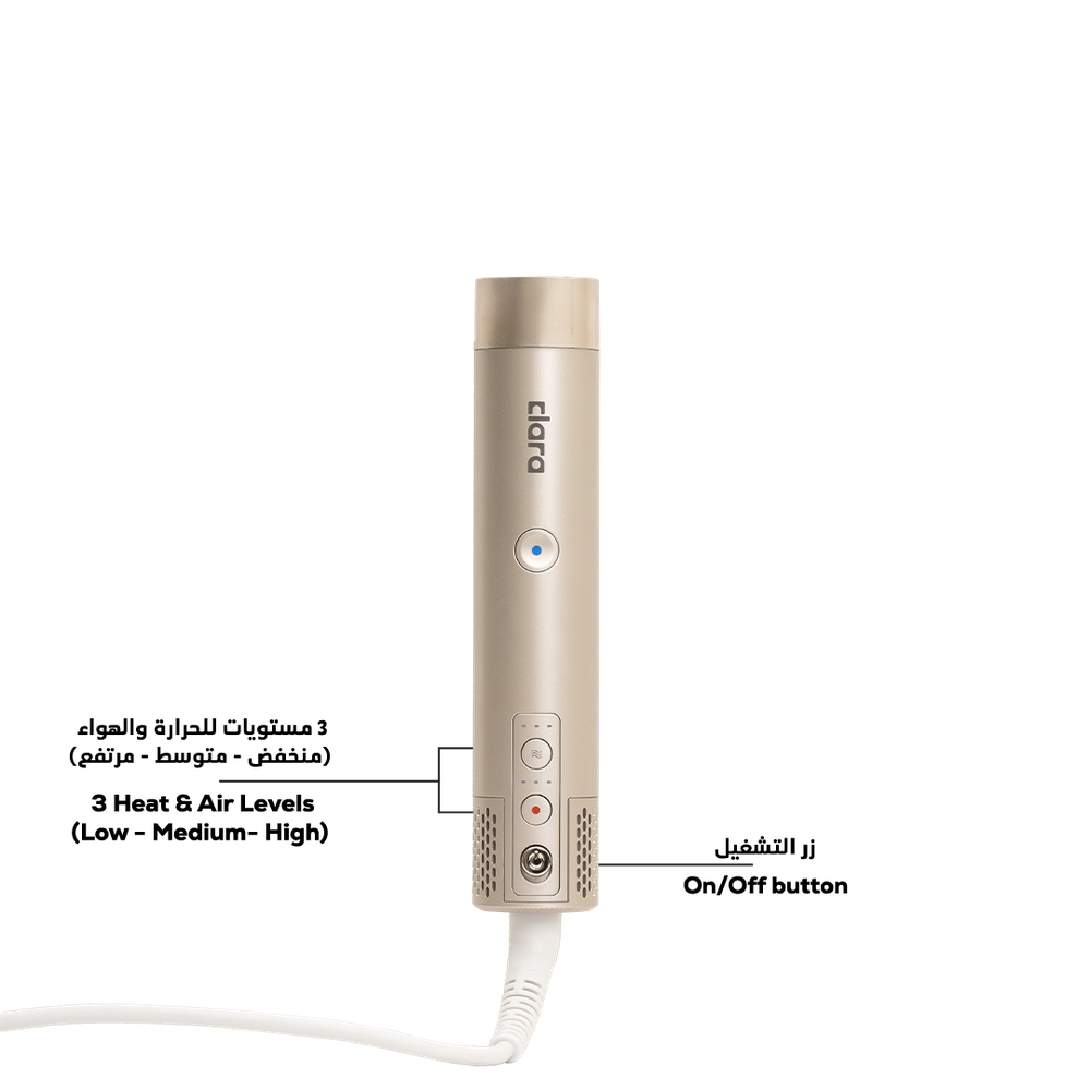 - 3 مستويات للحرارة والهواء لتناسب جميع أنواع الشعر وتفضيلاته (منخفض - متوسط - مرتفع).