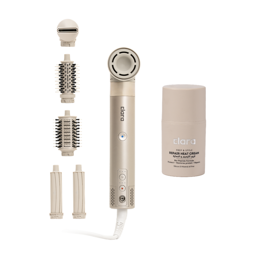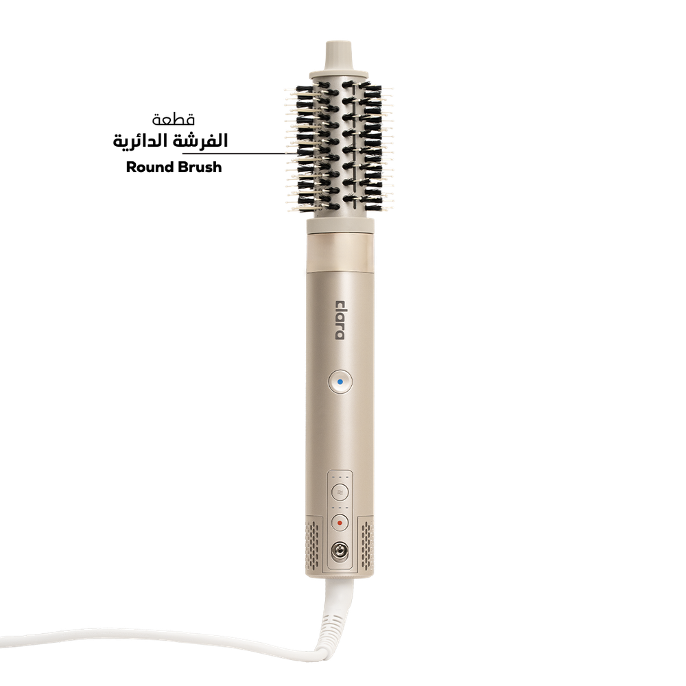 2- قومي بتثبيت أداة التصفيف المفضلة لديك بسهولة، ثم اختاري درجة الحرارة ومستوى الهواء المطلوبين.