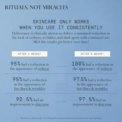 النتائج السريرية: استنادًا إلى دراسة سريرية مستقلة شارك فيها 40 عضوًا، تم قياسها عبر الأجهزة والتقييم من قبل الخبراء مع تطبيق Deliverance مرتين يوميًا: -