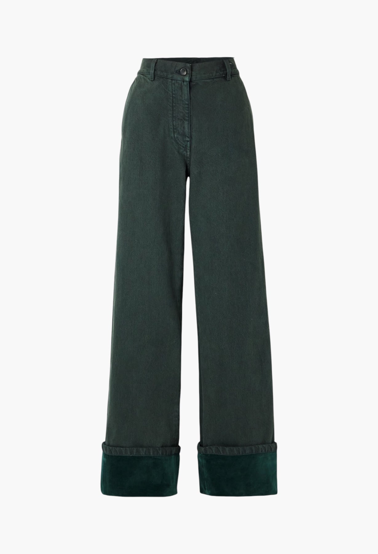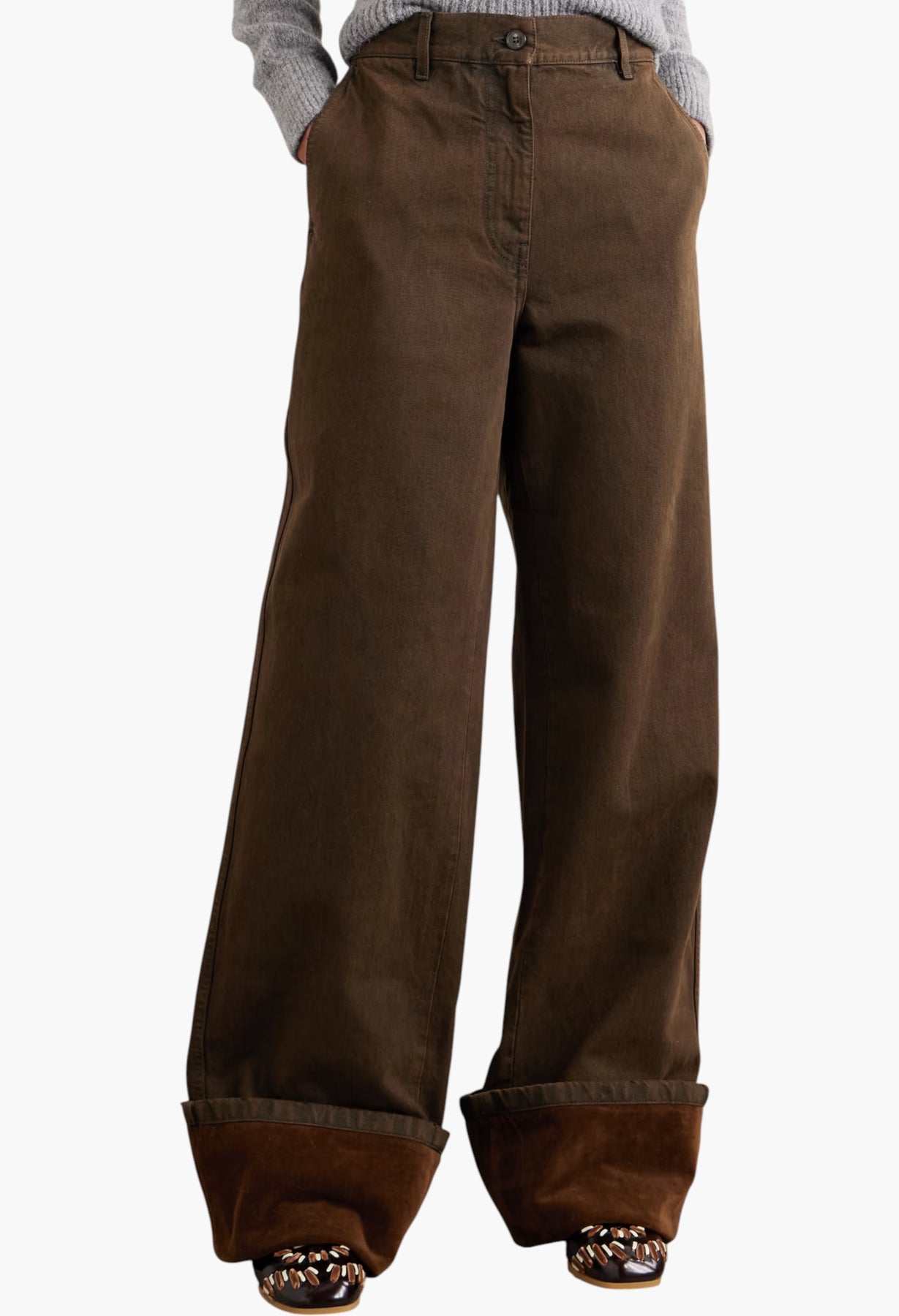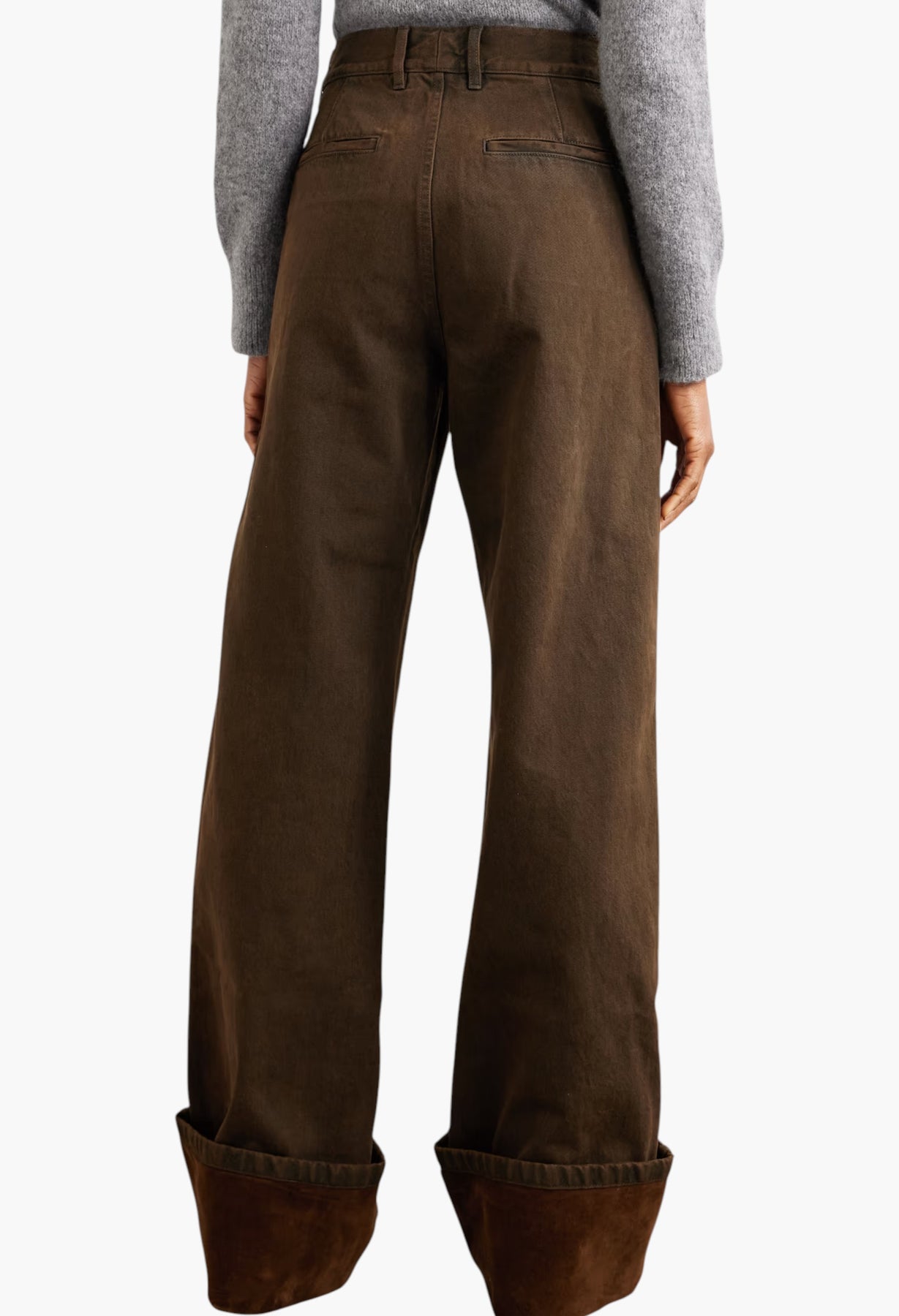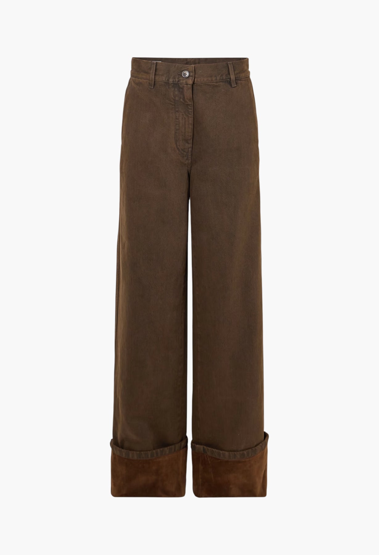 يقدم دريس فان نوتن لمسةً عصريةً في عالم الخياطة. هذا الجينز مصنوع من قماش الدنيم المغسول بالحجر بلون ترابي، مع ساقين واسعتين وأساور مطوية لإضفاء لمسةٍ مميزة.