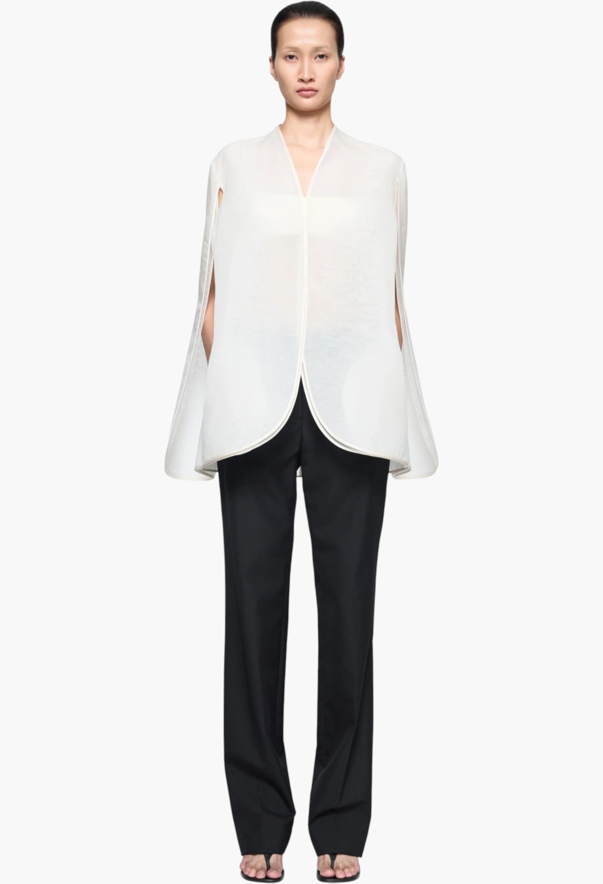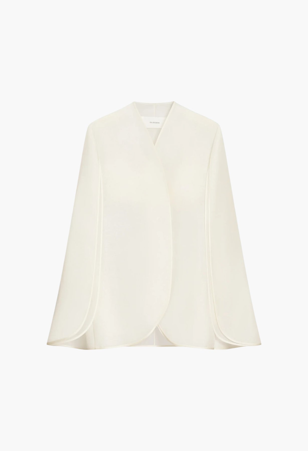 سترة "دوفر" الحريرية مصنوعة من حرير الأورجانزا، بتصميم أمامي متعدد الطبقات بنقشة توليب وأكمام على شكل كاب، مقصوصة على طبقتين. تتميز هذه السترة الحريرية بخطوط حريرية ناعمة، تحافظ على بنيتها مع الحفاظ على شفافيتها الرائعة، وتتناسب تمامًا مع حمالة صدر حريرية بسيطة تحتها. تضمن الحرفية الراقية أن تبقى السترة الحريرية خفيفة الوزن ومعبرة في آن واحد، مما يمنحها إطلالة أنيقة للمناسبات الراقية.