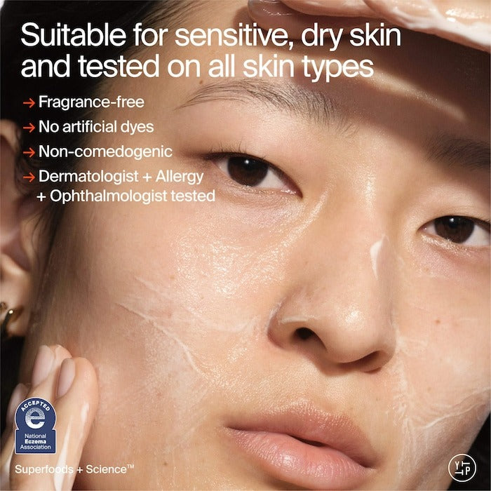 ما تحتاج إلى معرفته أيضًا: تم تركيب غسول الوجه المغذي والمرطب للبشرة الحساسة هذا بمستخلصات الفطر وسبعة في المائة من الجلسرين لتقليل الاحمرار وتهدئة البشرة المجهدة وتنعيم الملمس الخشن مع إزالة المكياج وكريمات الوقاية من الشمس بلطف.