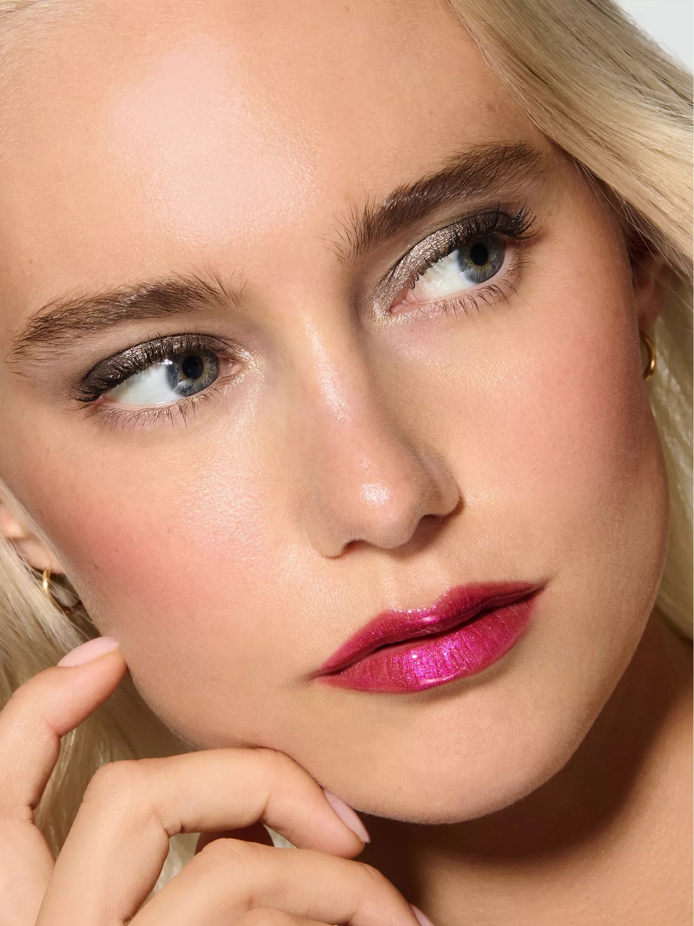 المزايا: طلاء شفاه لامع لامع بلمسة من الترتر، يتميز بطبقات علوية شفافة لامعة ببريق ثنائي اللون جذاب. ارتديه بمفرده أو كطبقة علوية لإضفاء لمسة من الترتر على أي لون شفاه.