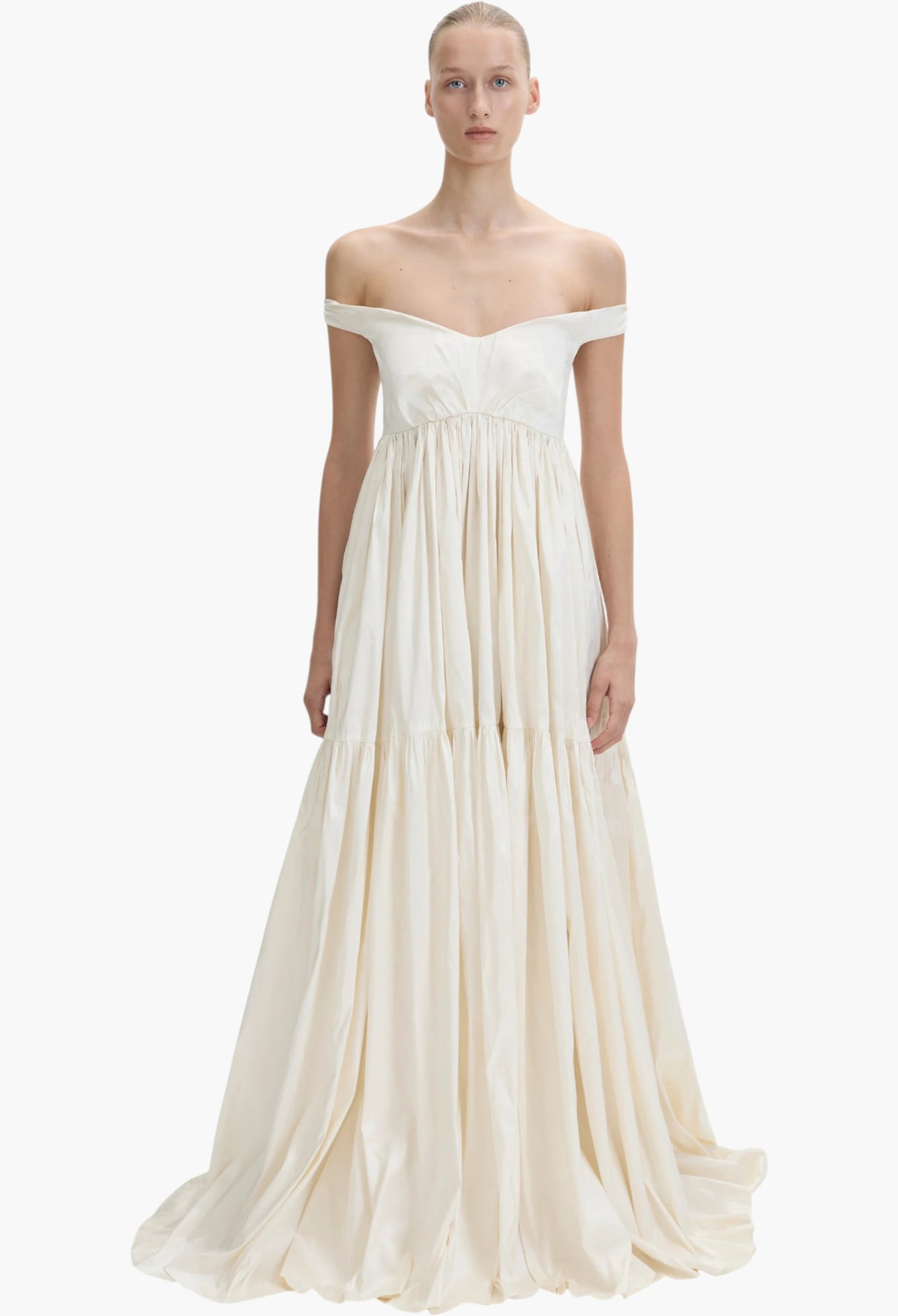 فستان جوسلين الأسود هو فستانٌ أنيقٌ يصل إلى الأرض، مصنوعٌ من حرير الدوبيون 100%. تنورته الواسعة وذيلها الطويل يتوازنان مع فتحة صدر شبه قلب منحوتة بدقة، وأكمام أنيقة مكشوفة الكتفين.