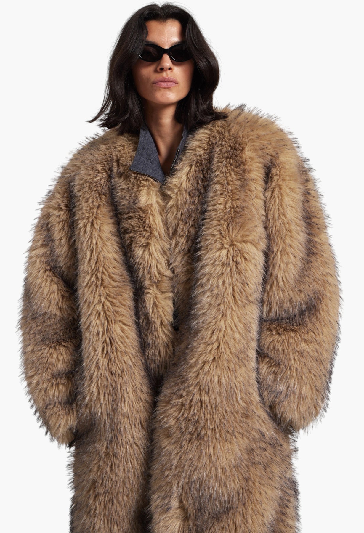 Rotate Faux Fur Long Coat - Nougat - GLAM MODA