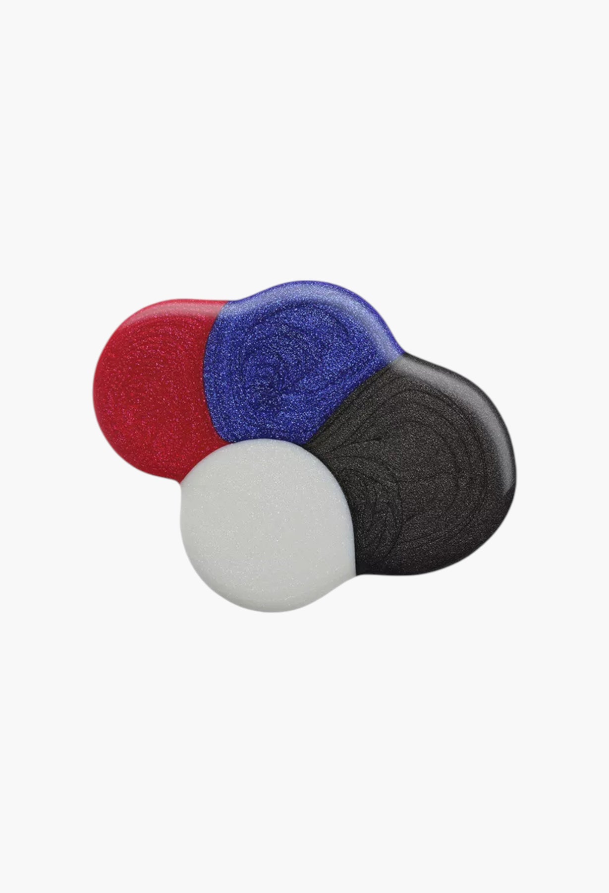 طريقة الاستخدام: يمكن إزالة الأغطية المستديرة إذا كنتِ تفضلين وضع الطلاء باستخدام المقبض الأضيق أسفله. ضعي كل لون على حدة، أو فوق درجات ألوان أخرى لإضفاء لمسة شخصية.