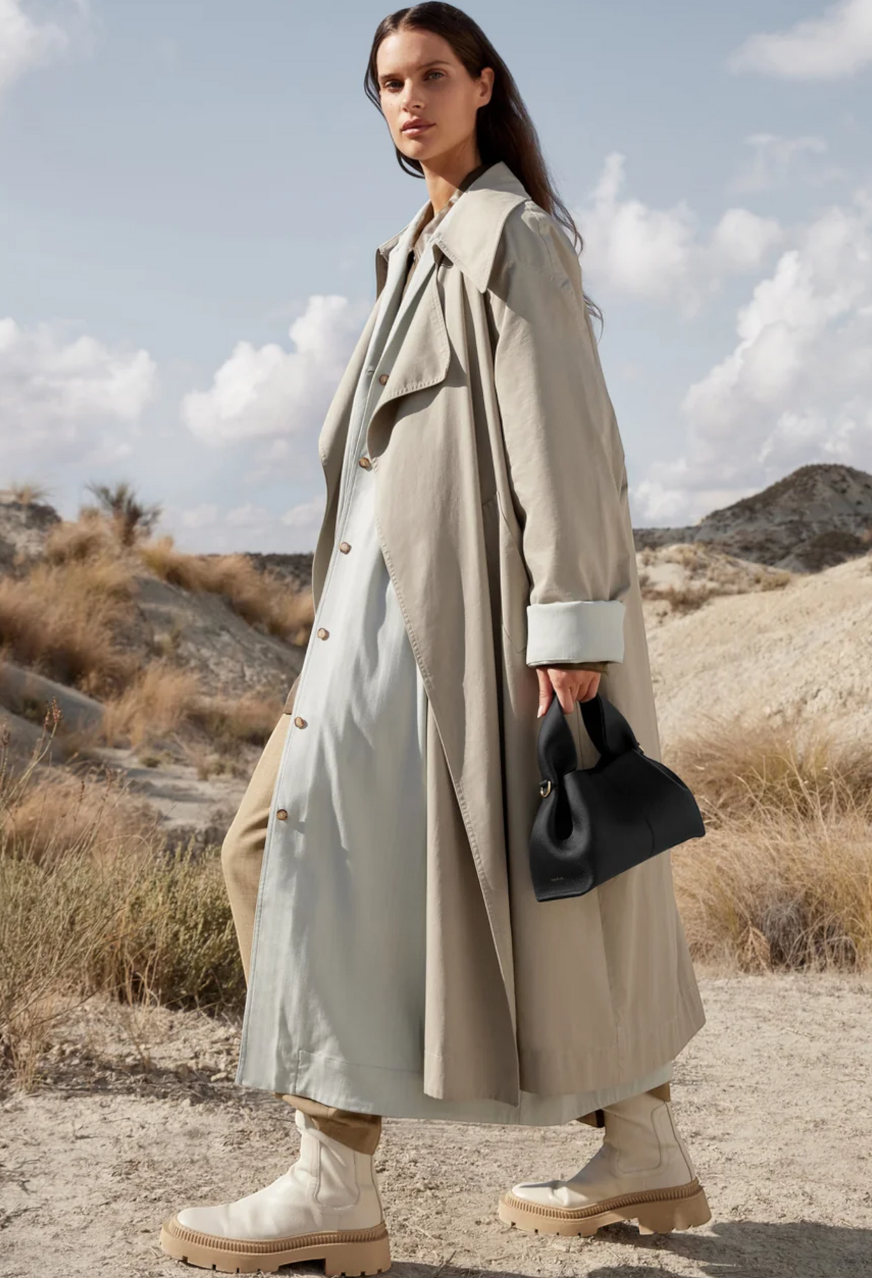 The “Numéro Neuf” features an organic design that strikes the right balance between flexibility and hold. Its draped leather is held in place by hand-sewn stitches.