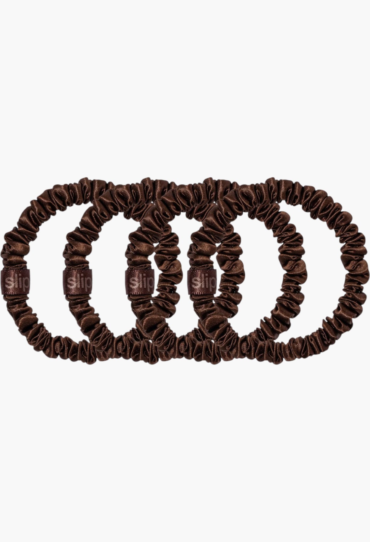 بني غامق - ربطات شعر رفيعة من الحرير الخالص
