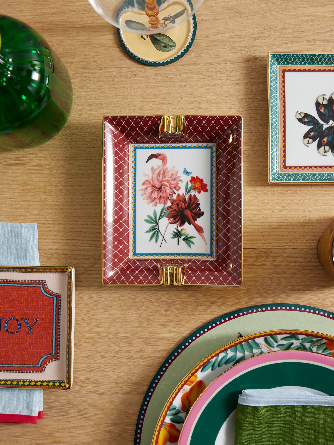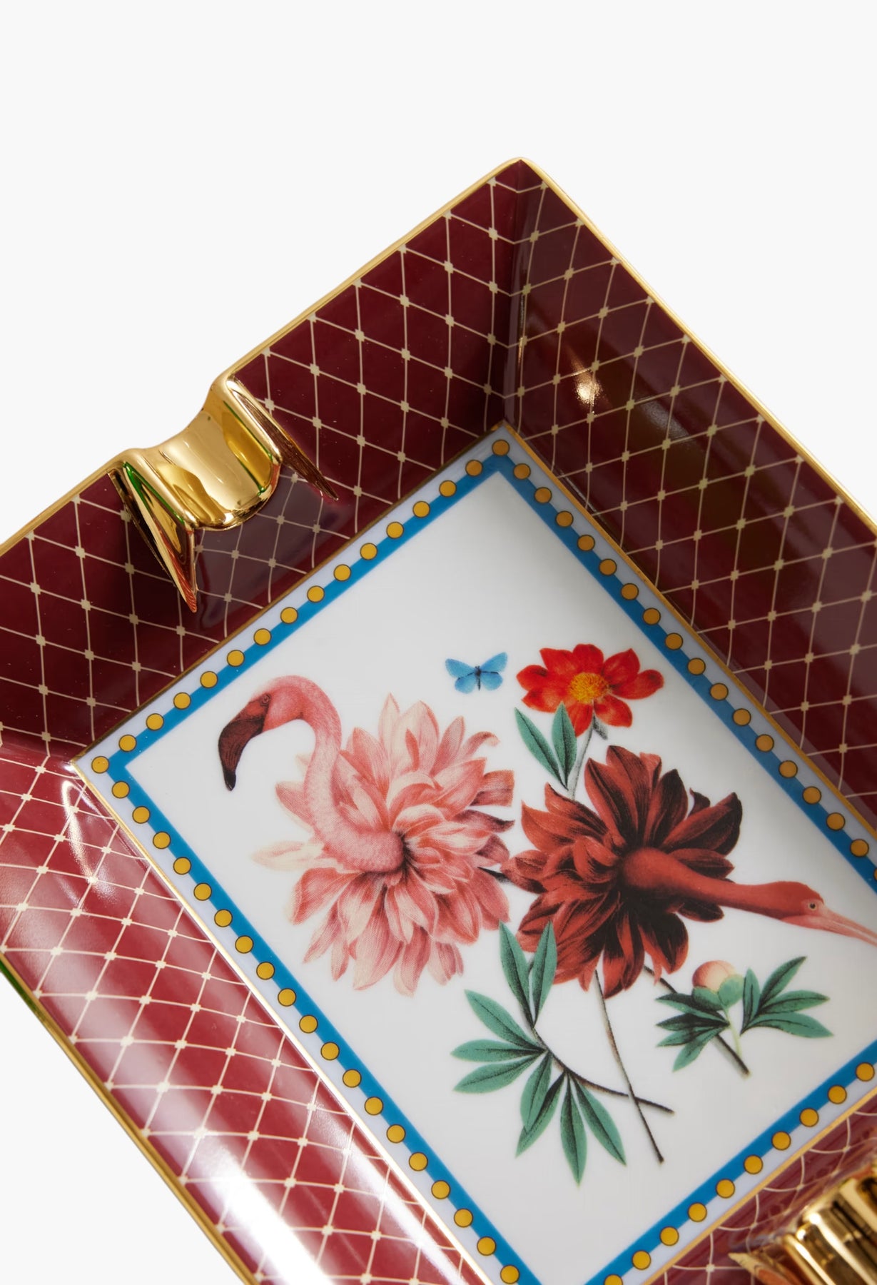 La DoubleJ's ashtray is part of the label's collaborative 'Fantastic Creatures' collection with surrealist artist Beto Val. Made in Italy from porcelain, it's decorated with a whimsical 'Birdbloom' illustration and traced with gold-plated edges. Use it to hold incense or trinkets.