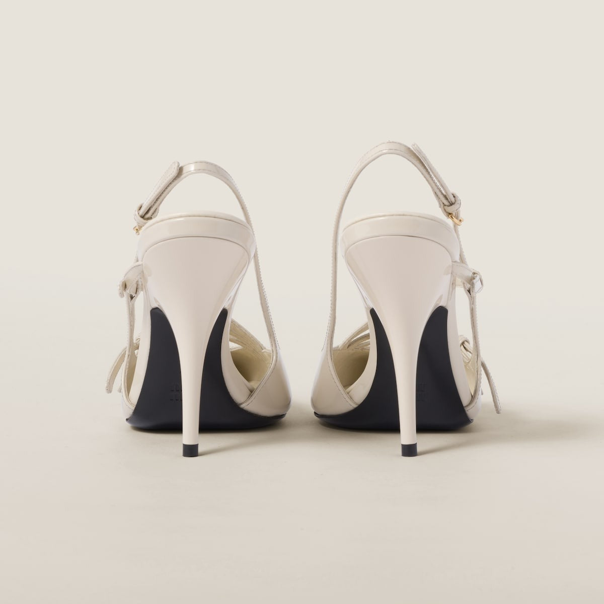 Ivory - Patent Leather Slingbacks With Buckles - GLAM MODA