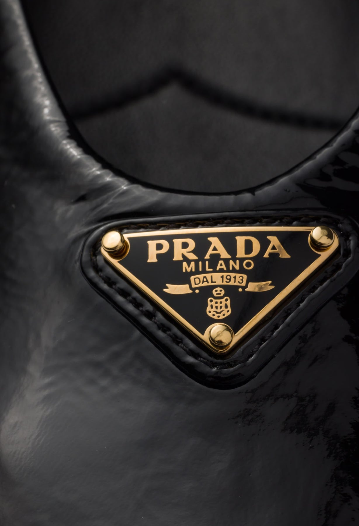 التفاصيل: شعار برادا المثلث المميز باللون الذهبي على أصابع القدم