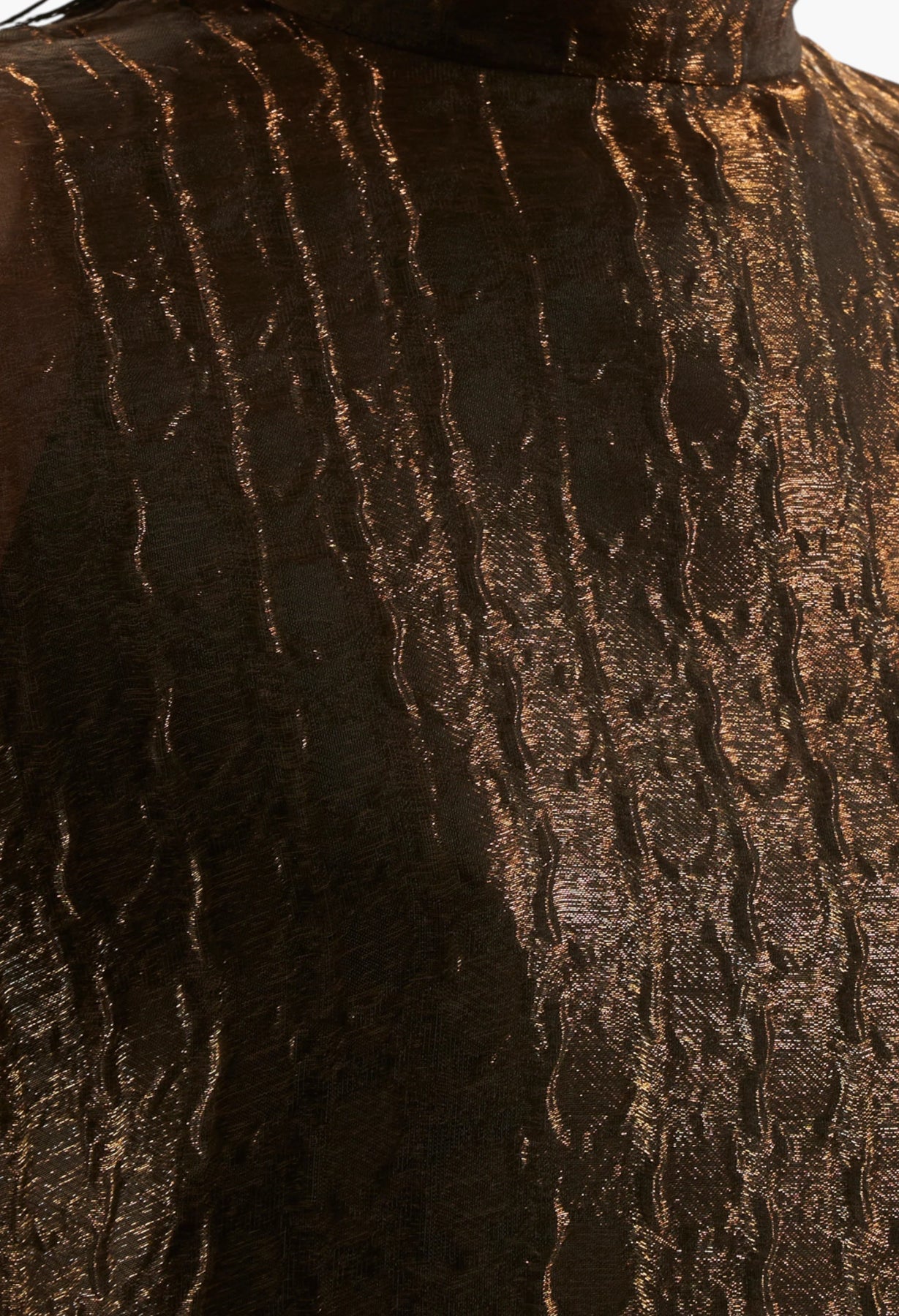قفطان غير متماثل مصنوع من الأورجانزا المعدنية المنسوجة في كومو،