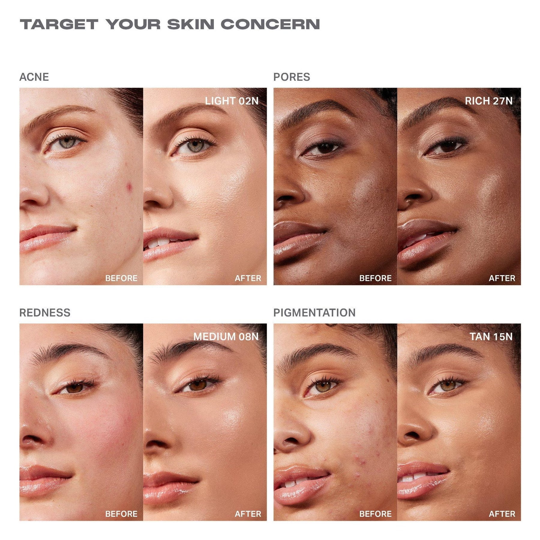 Weightless, longwearing formula that diffuses imperfections with undetectable, buildable medium coverage.