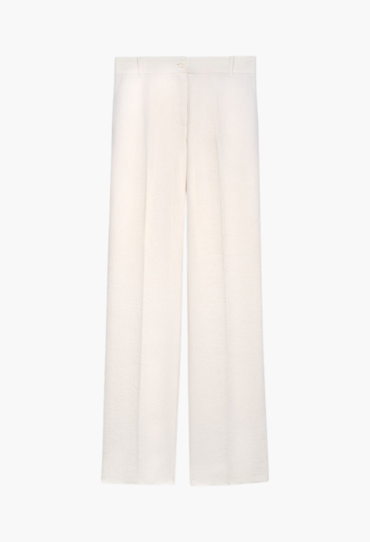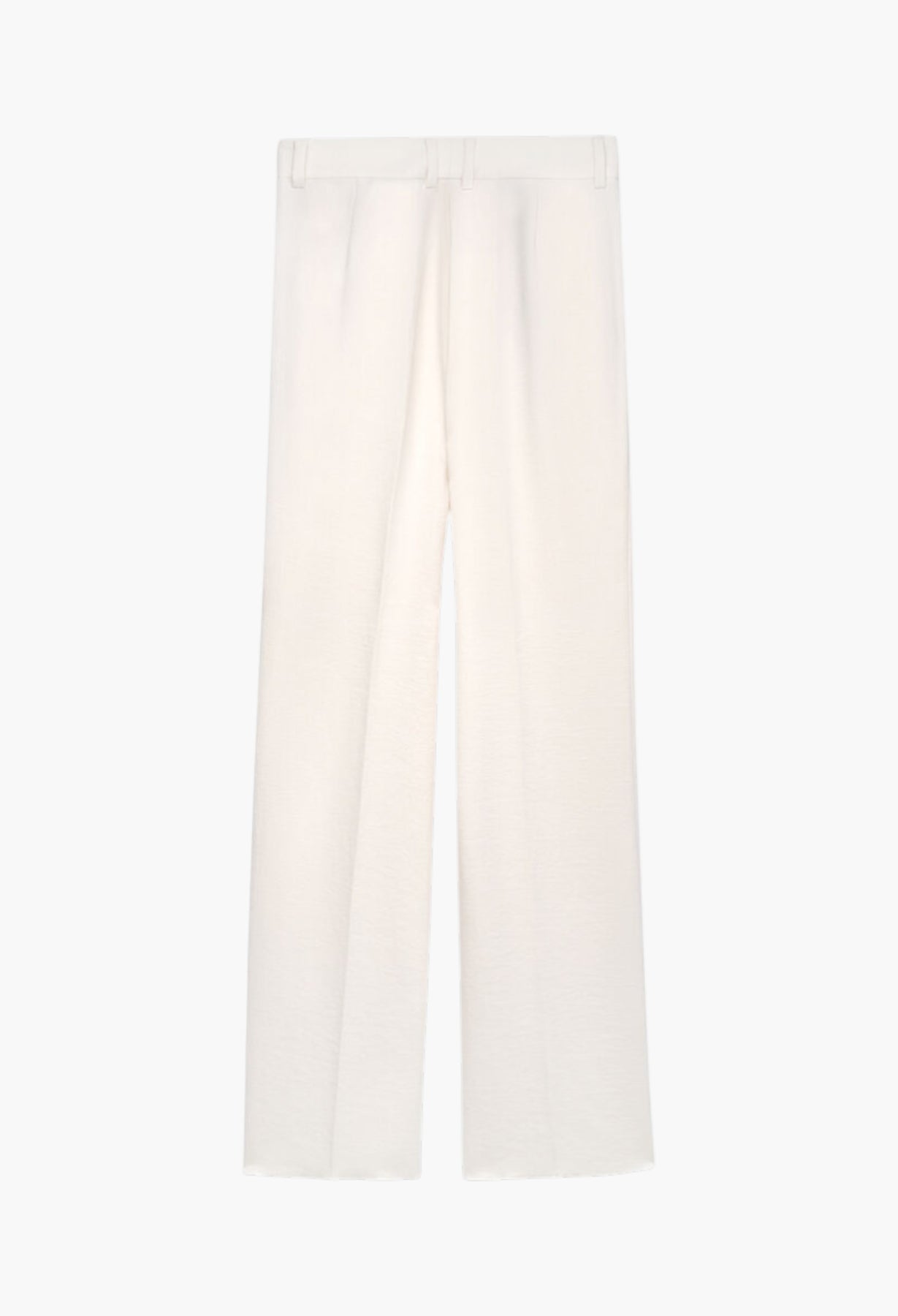 Recycled polyester straight trousers woman. Button closure. Belt loops on the waistband. Pockets on the side. Pleats on the back.