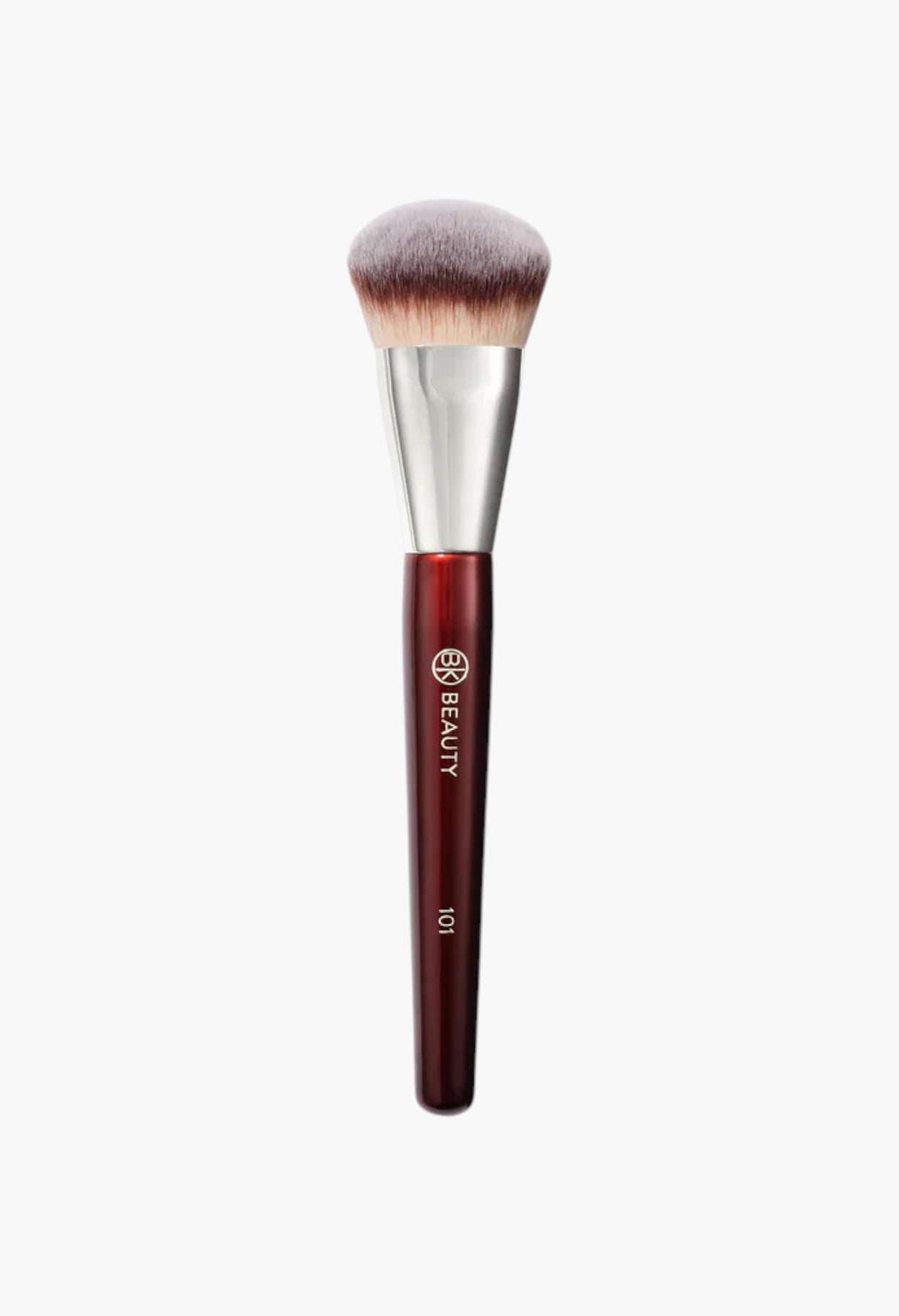The 101 Contoured Foundation Brush is designed to give you a flawlessly blended, airbrushed finish with ease. Its unique curved, contoured shape hugs the natural angles of the face—perfectly fitting around the cheeks, jawline, and forehead for seamless foundation application.