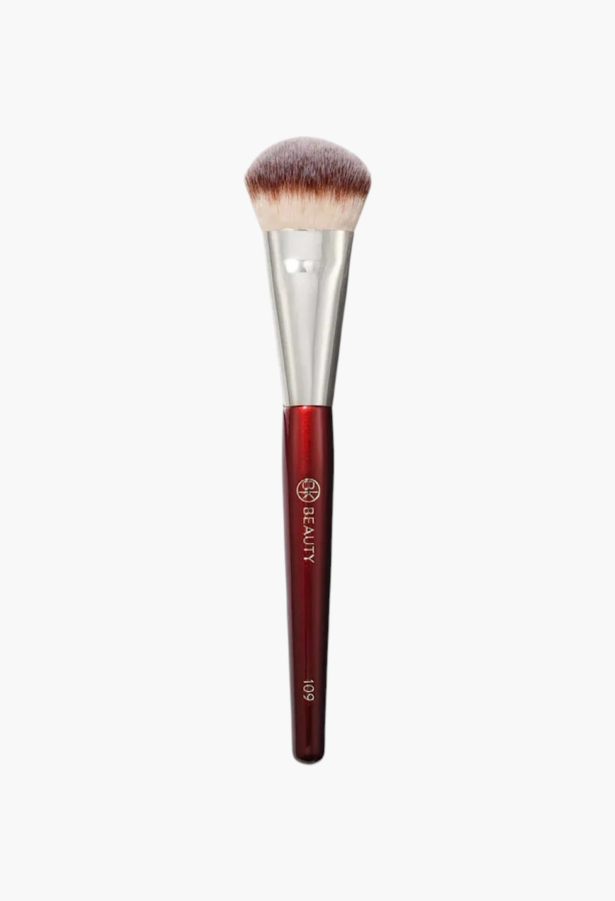 The 109 Mini Contoured Foundation Brush is your go-to tool for precise, seamless complexion blending. Designed with a smaller, contoured brush head, it fits perfectly into detailed areas of the face—such as under the eyes, around the nose, and along the edges of the lips—making it ideal for targeted foundation placement, concealer blending, and contour refinement.