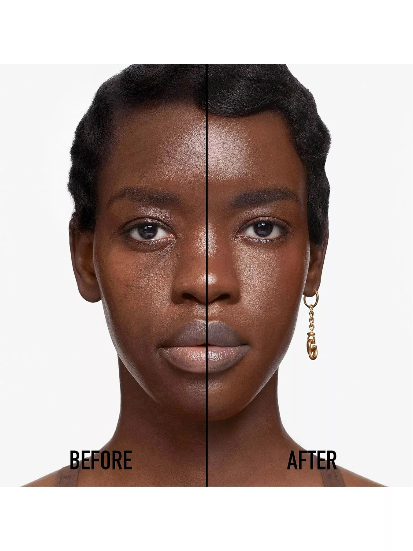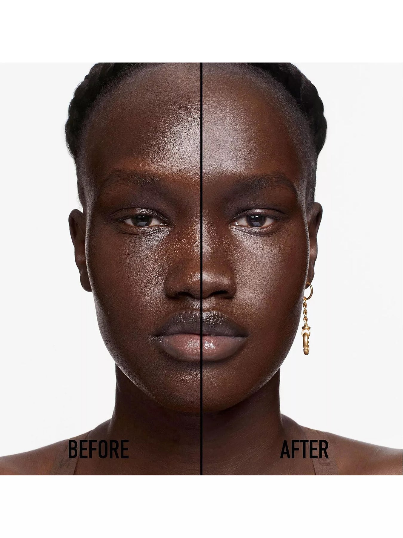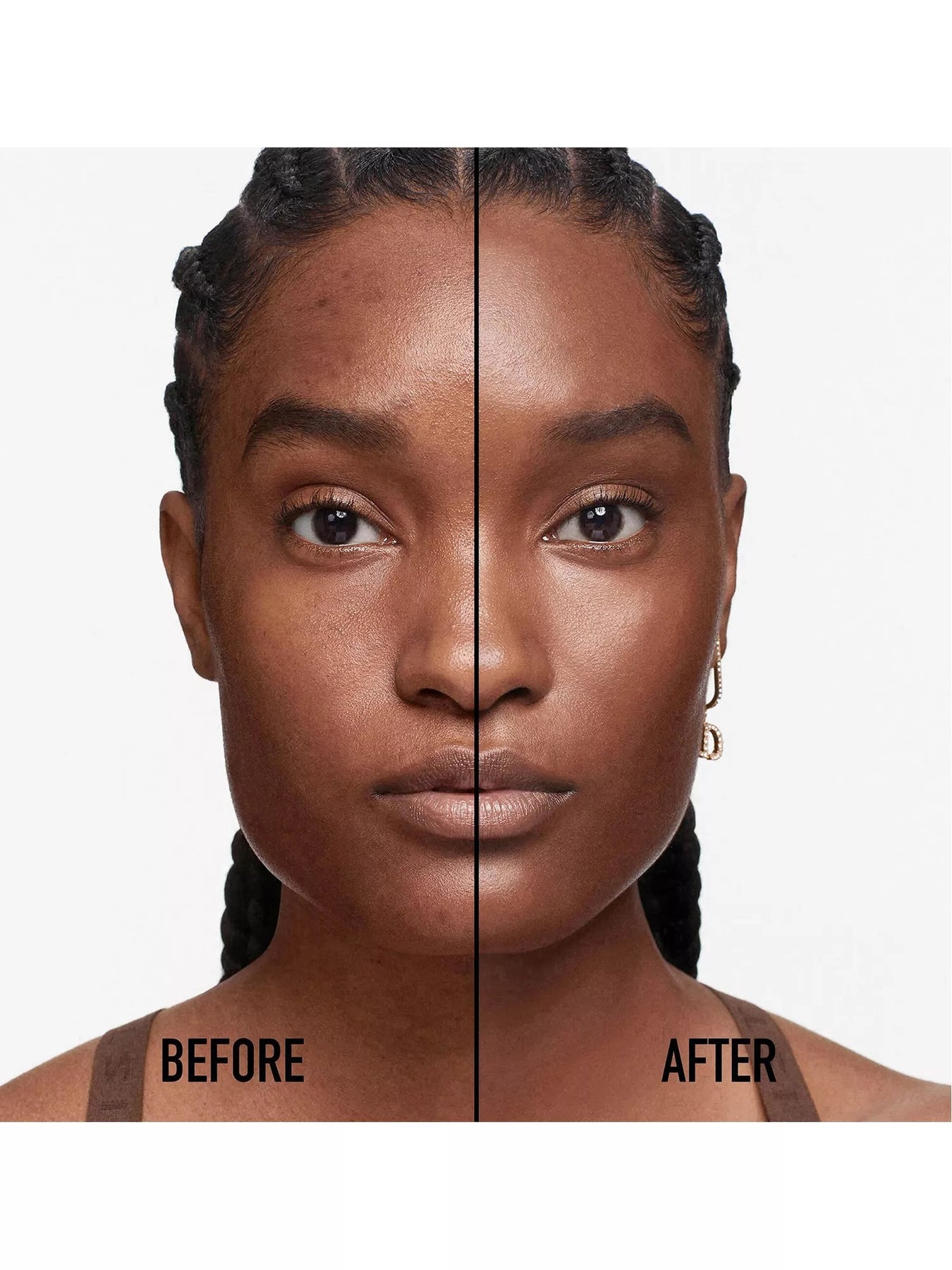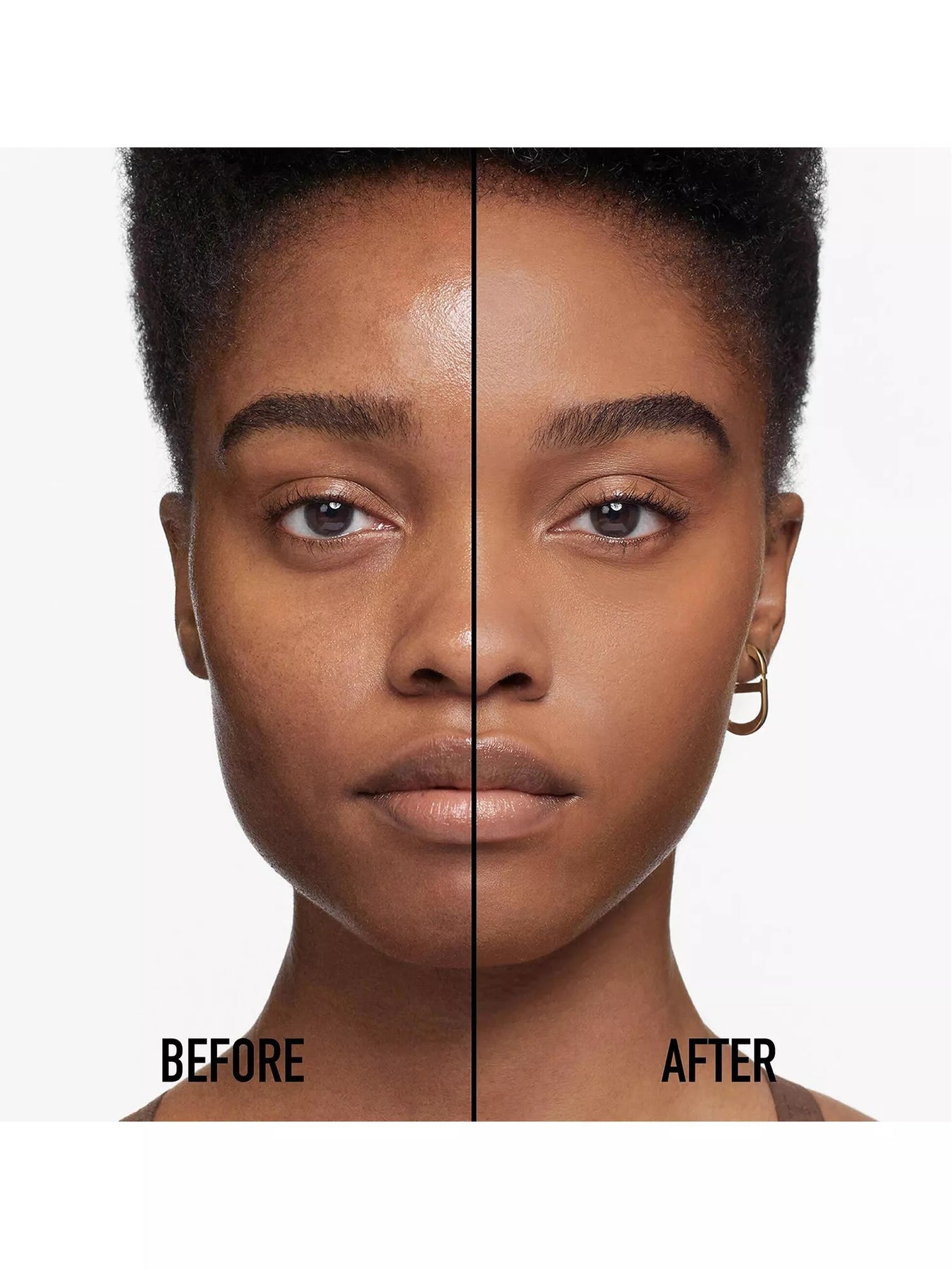 Application: start applying the foundation by dabbing onto areas that require correction, then blend by smoothing – for totally even coverage over the entire face, you can use a foundation brush