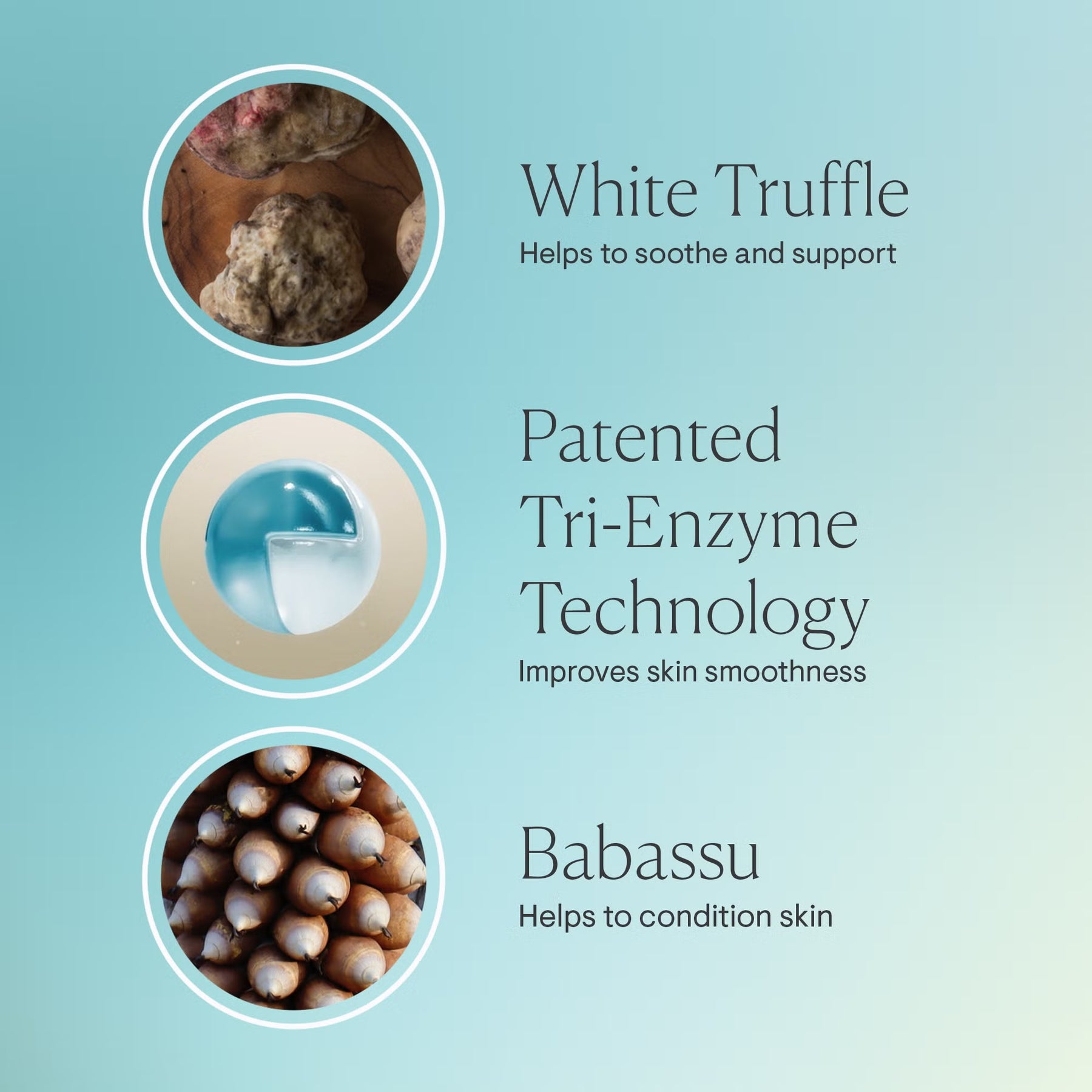 Powered by patented Tri-Enzyme Technology, the facial cleanser removes dead skin cells and visbly encourages the skin's natural renewal process. The antioxidant-rich formula rinses away pollutants and protects the skin from further environmental damage. Moringa and babassu oil nourish the skin to resist a stripped feeling while white truffle protects the natural moisture barrier.
