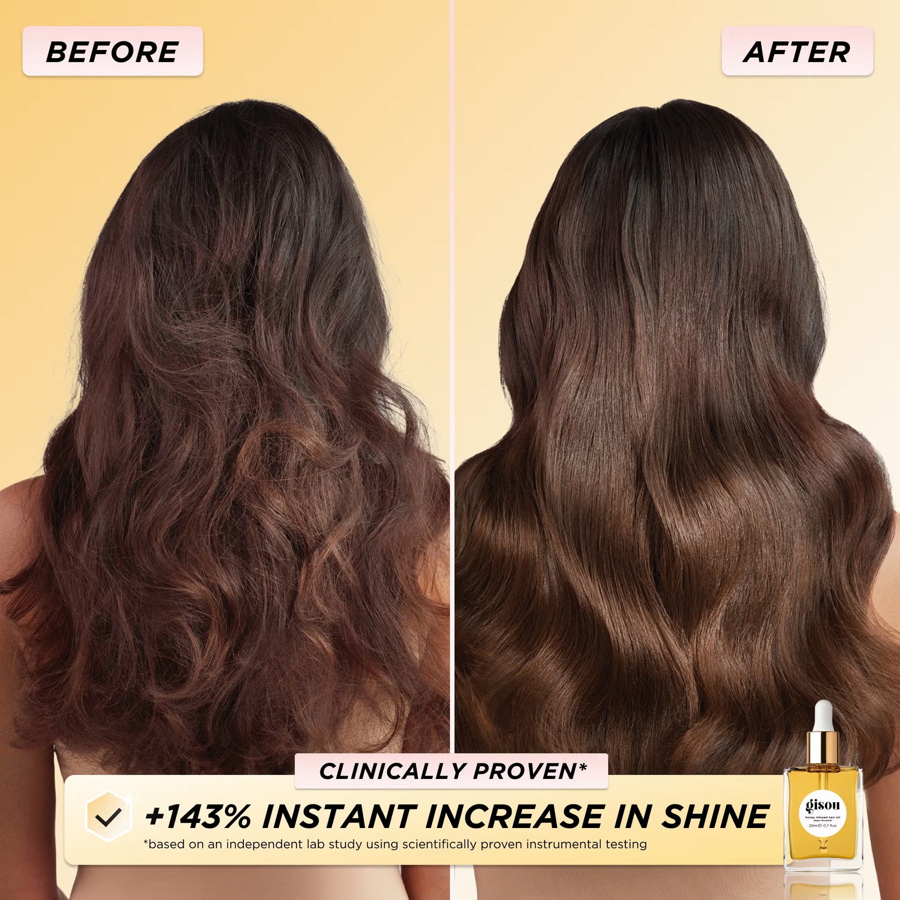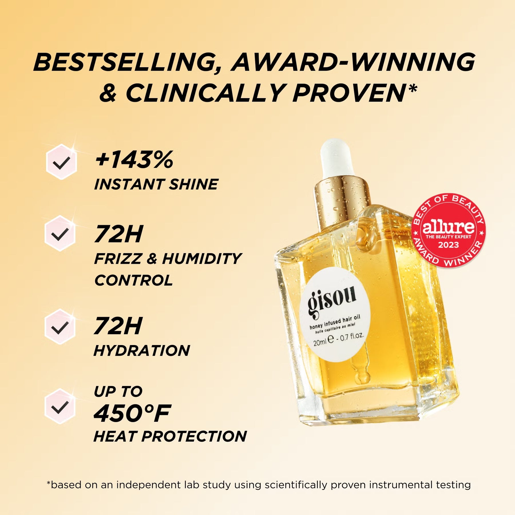Gisou Tip: Mix a few drops of Hair Oil and Hair Perfume into your palms and rub your hands together. Distribute evenly from the mid-length to ends for long-lasting fragrance and refreshed hair.