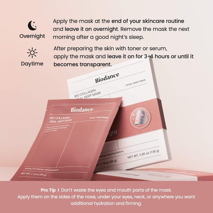 After preparing the skin with toner or serum, apply the Facial Sheet Mask and leave it on for 3–4 hours or until it becomes transparent.