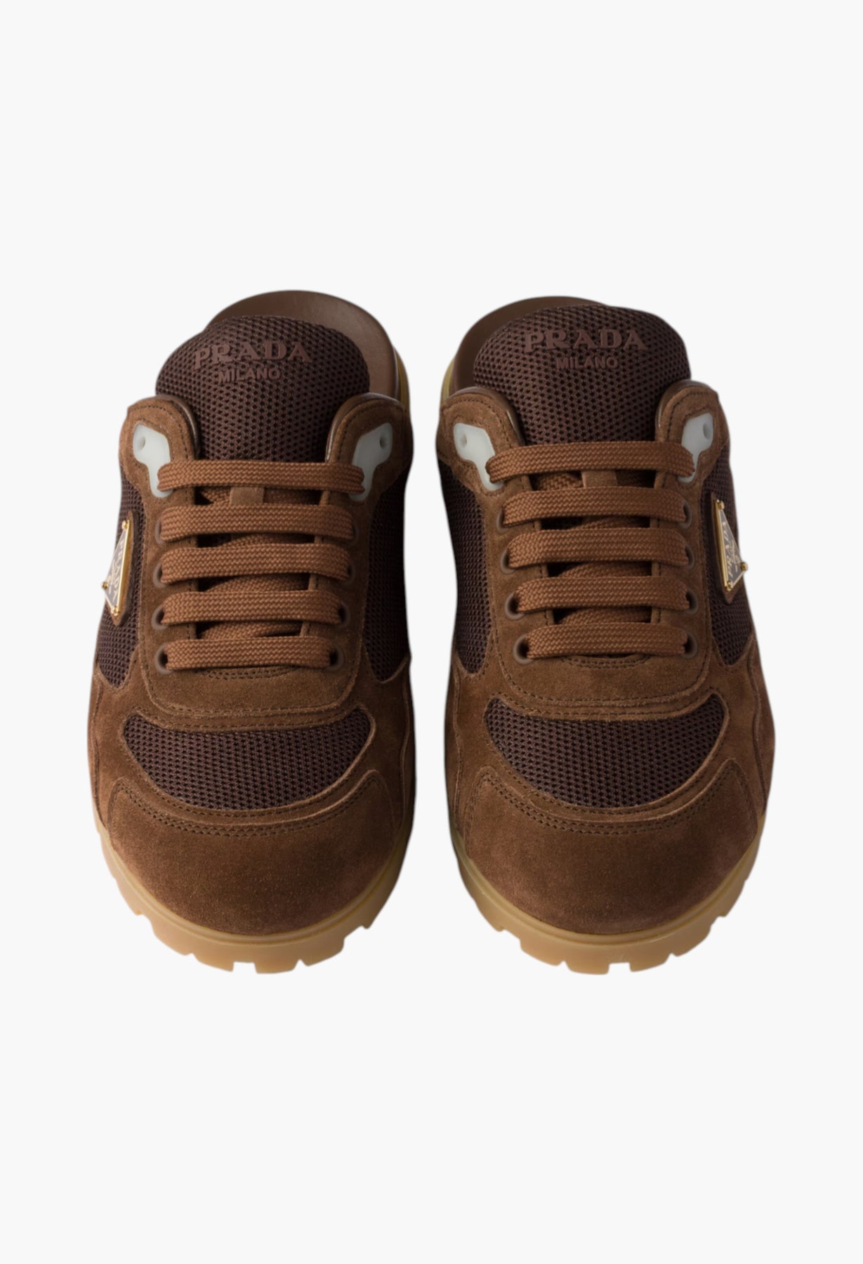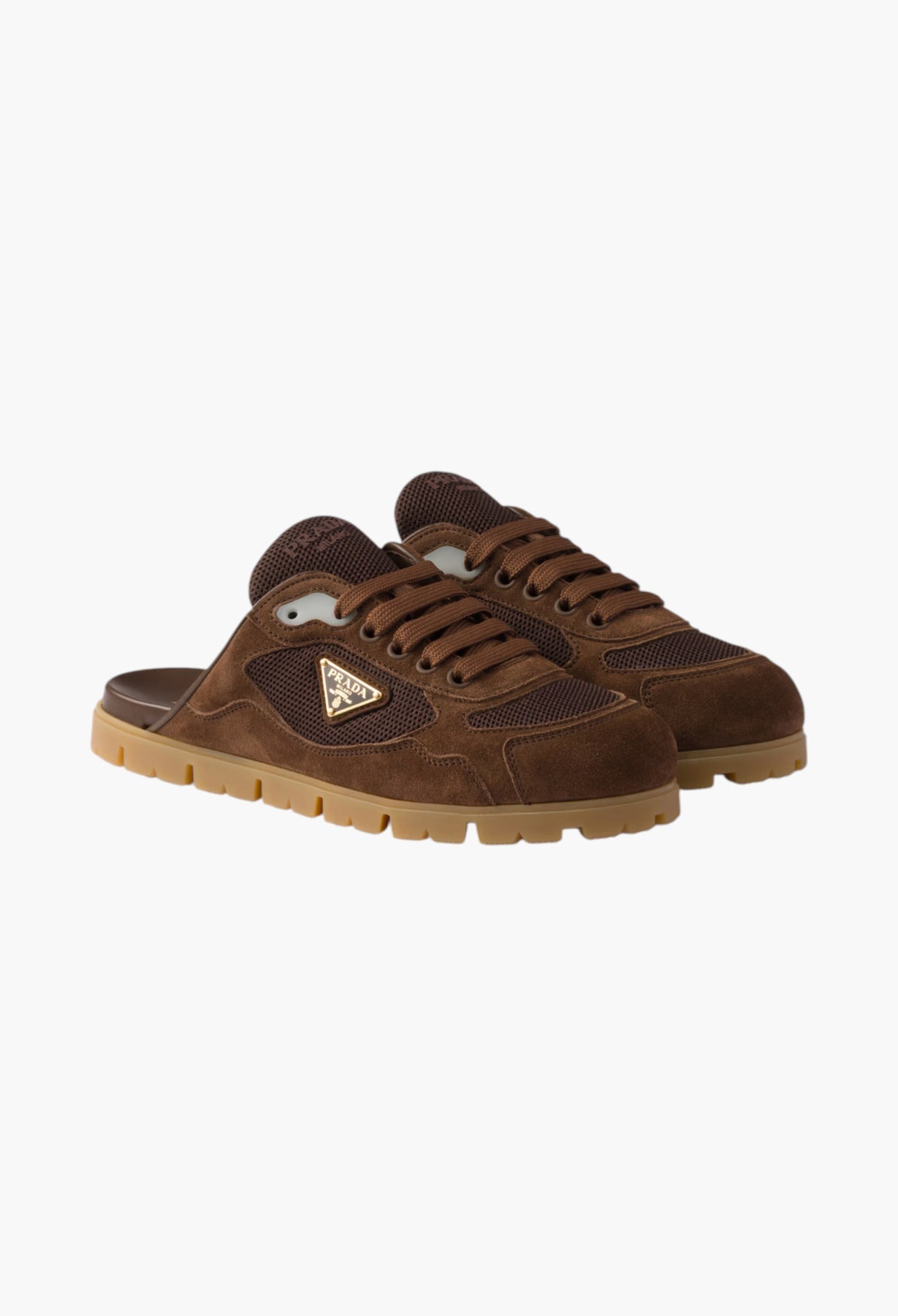 Cocoa Brown - Trail Mesh Fabric And Suede Mules