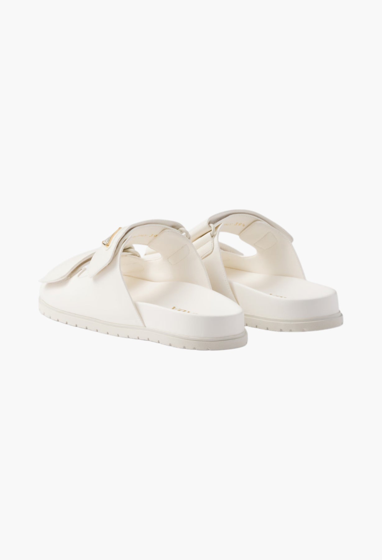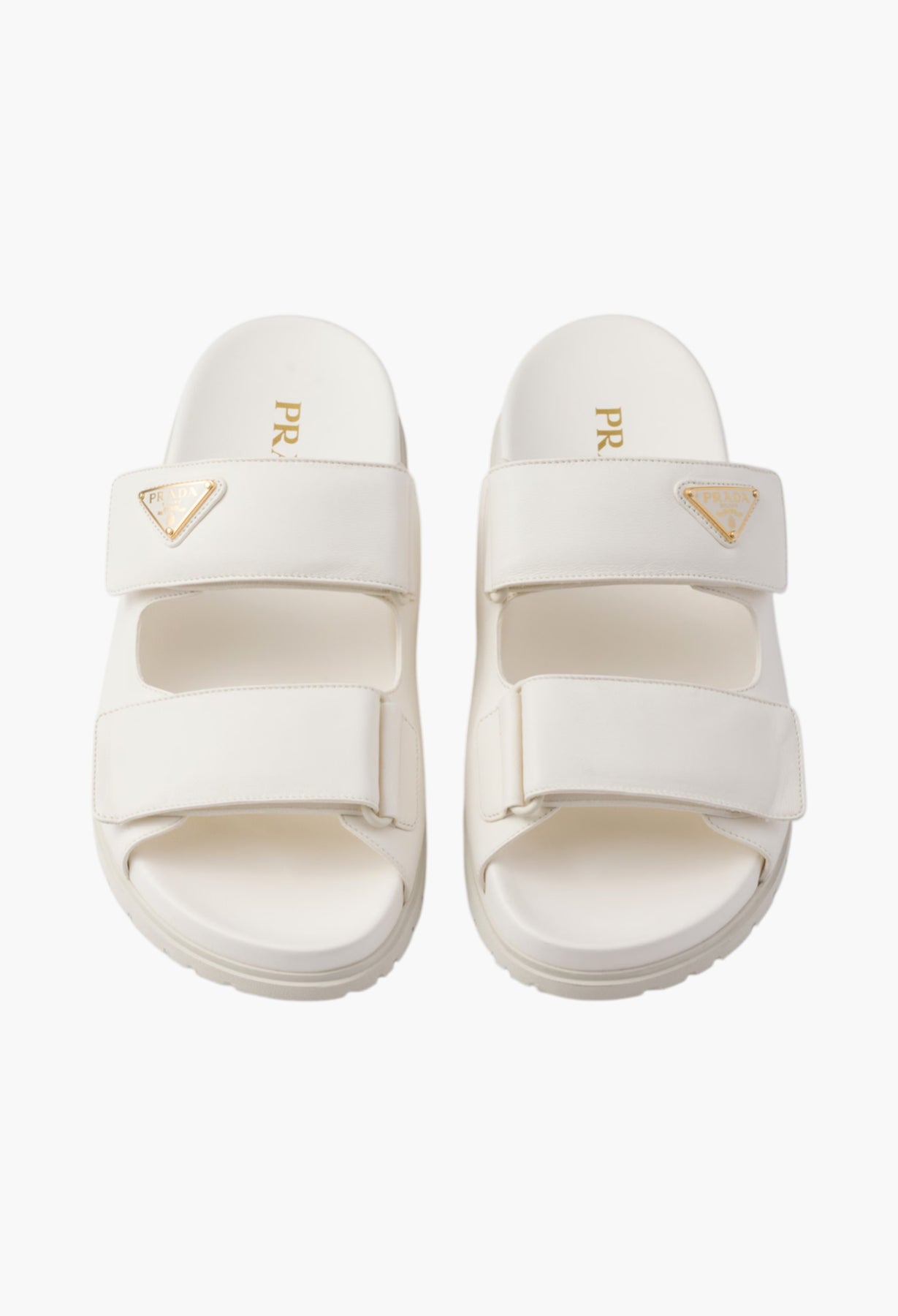 These nappa leather sandals defined by comfortable rubber soles and decorated with the iconic enameled metal triangle logo have a sporty design with refined details.