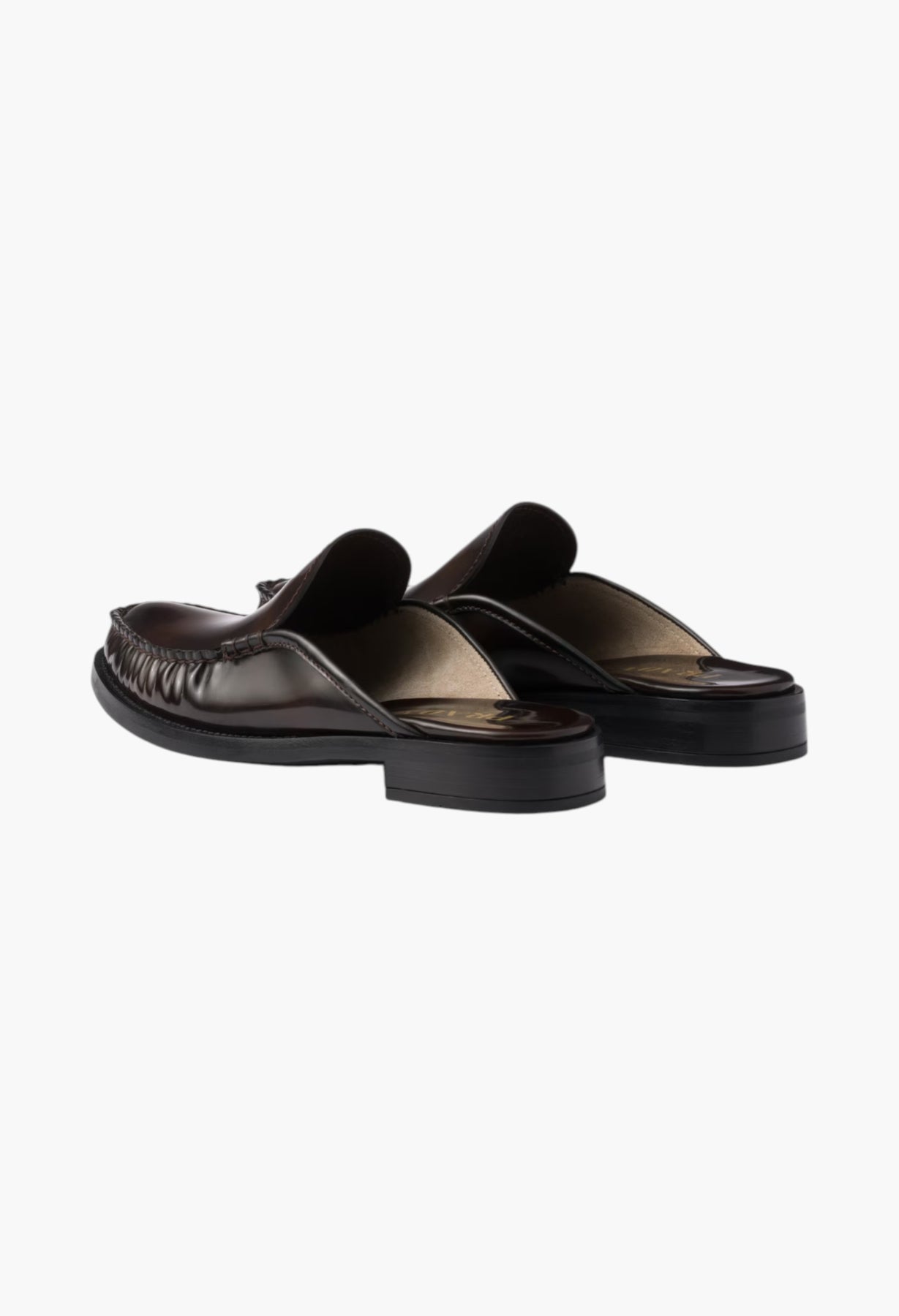 From the study of classical shapes comes a new interpretation of the mule, presented with a hybrid design that combines formal elements with a casual attitude. This shoe, a contemporary evolution of the loafer, features tapered lines emphasized by elegant brushed leather.