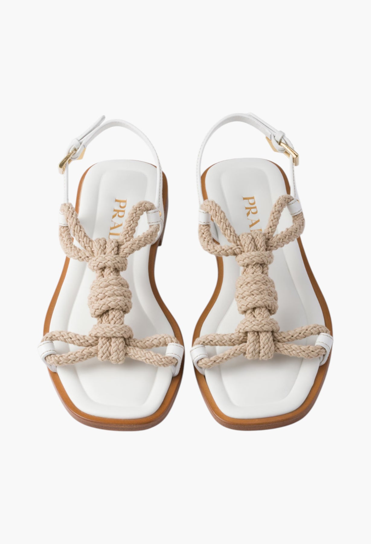 Unexpected notes inspired by nautical style codes give these flat leather sandals distinctive style. The square toe silhouette features a knotted cord detail that enriches the upper with sleek lines.