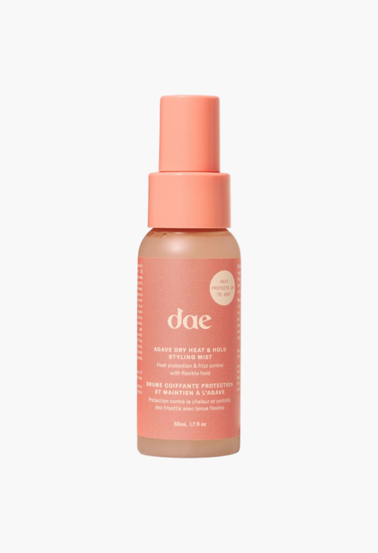 Heat wave, handled. This ultra-fine styling mist provides heat protection up to 450°, frizz + humidity control & a shiny, touchably-soft, all-dae hold.