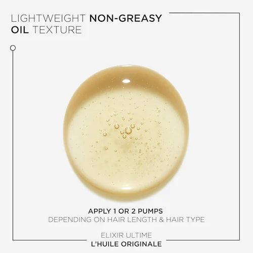 The Elixir Ultime Refillable Hydrating Hair Oil provides up to 92% more shine and up to 10X smoother and stronger hair.