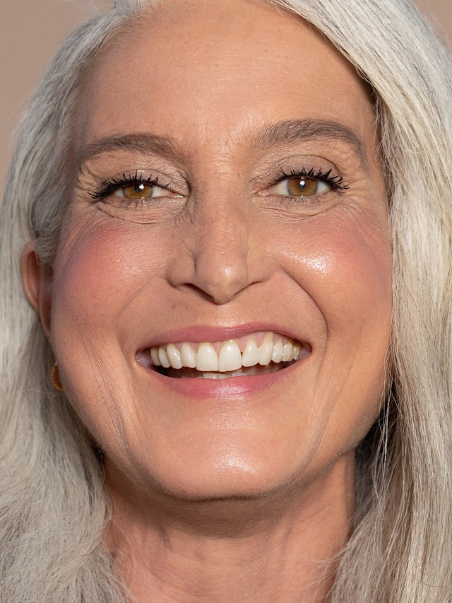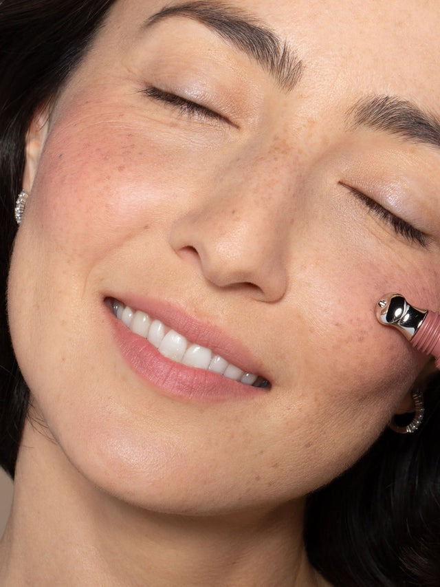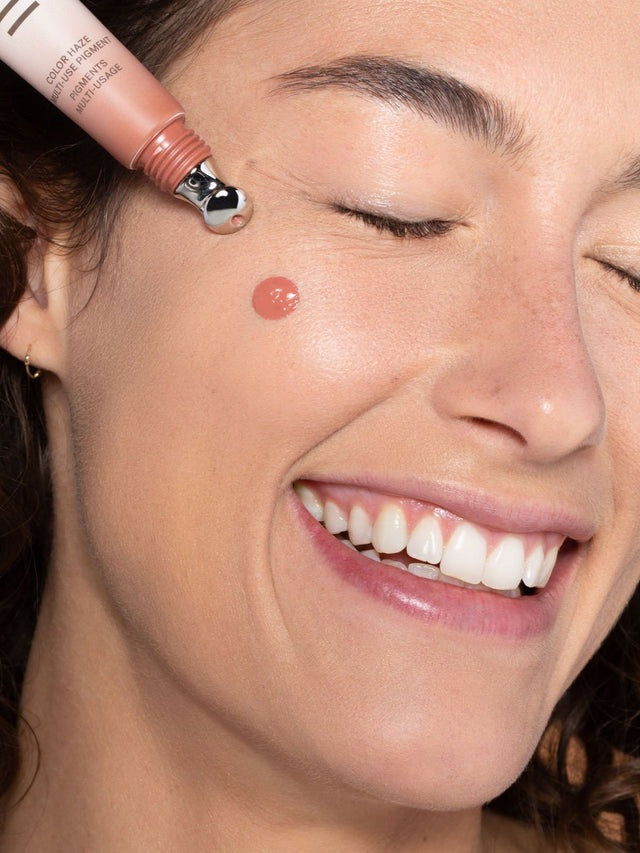Cheek: A little goes a long way. Dab a dot or two along the apples of the cheeks, then blend out with fingers or your favorite Complexion Brush to achieve a soft wash of color.