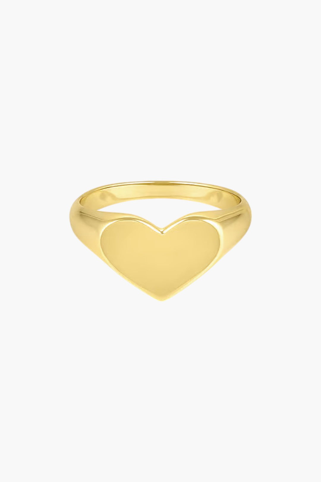 The Louise Heart Signet Ring adds fun romance to any look with its modern-style heart design. Crafted with a gold plated finish, this timeless signet ring is perfect worn solo or stacked alongside your favorite ring stack.