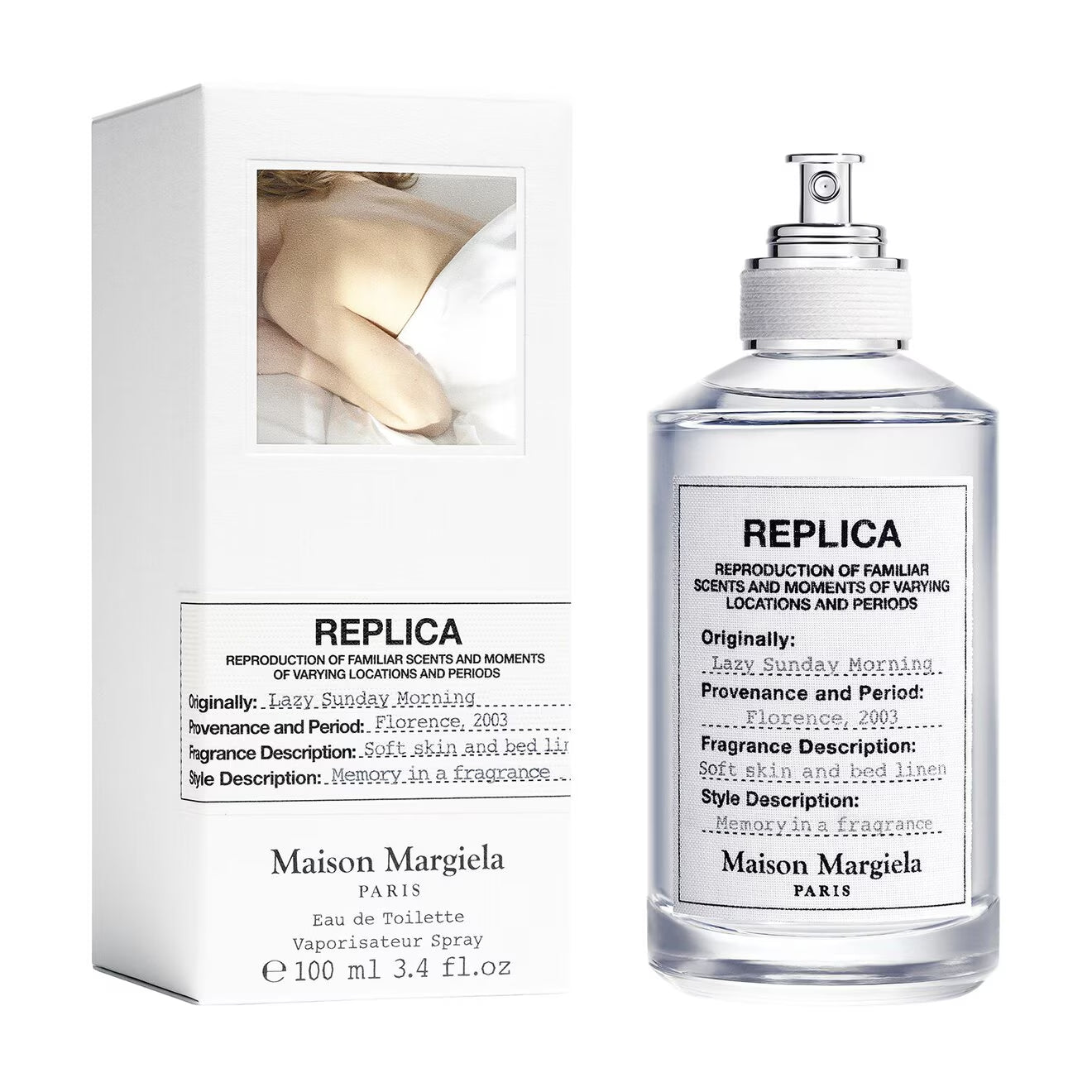 Lazy Sunday Morning is a classic floral fragrance that recollects the memory of soft, velvety skin enveloped in fresh and comfortable linens through notes of fresh pear, iris, and tender white musk. The dawning of sunrise and the sun’s gentle wake welcomes a perfect morning. A soft summer breeze carries whispers of flowers, stirring up the reassuring scent of fresh laundry. Your delicate, silky-smooth skin warms under a cocoon of fresh linen sheets, leaving only memories and sensations. Lazy Sunday Morning is a casual, classic, floral fragrance that evokes the sensation of comfort, purity, and relaxation. Restorative and clean, this eau de toilette fragrance resides within the ‘REPLICA’ Memories Collection—a family of scents designed to evoke personal memories that each one of us can recall.