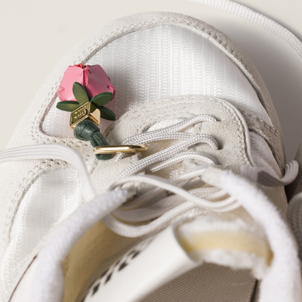 Miu Miu's elegant, playful character comes to life in this flower-inspired micro trick that enriches the silhouette of sneakers and bags, creating unique style combinations.