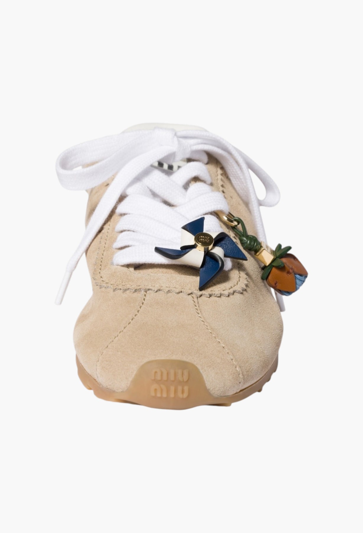 Miu Miu's elegant, playful character comes to life in this flower-inspired micro trick that enriches the silhouette of sneakers and bags, creating unique style combinations.