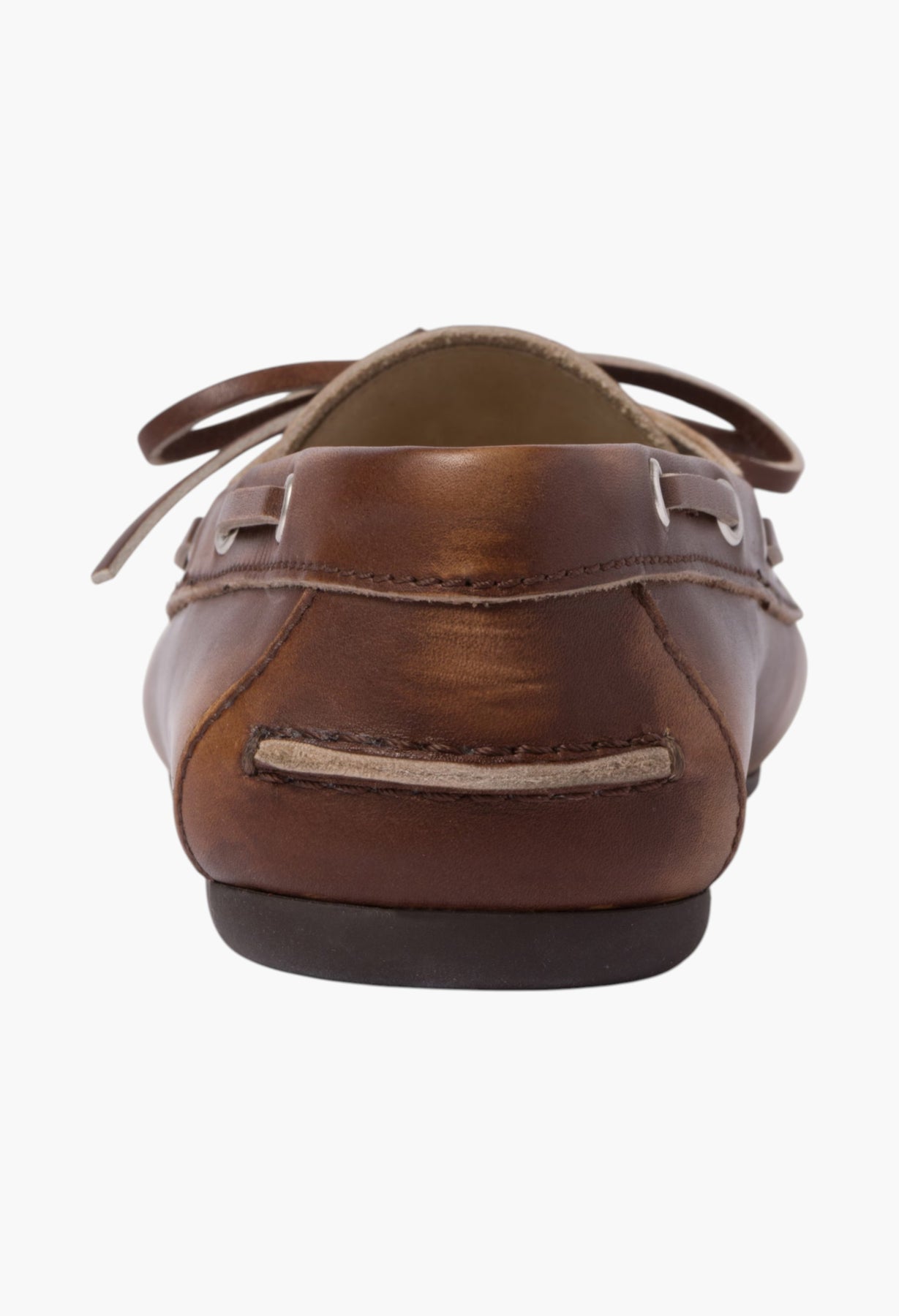Vintage inspiration and a collegiate attitude are combined in these boat-style loafers in leather with a deliberate bleached effect. The refined design of the shoe invites new combinations and contrasts with the looks.