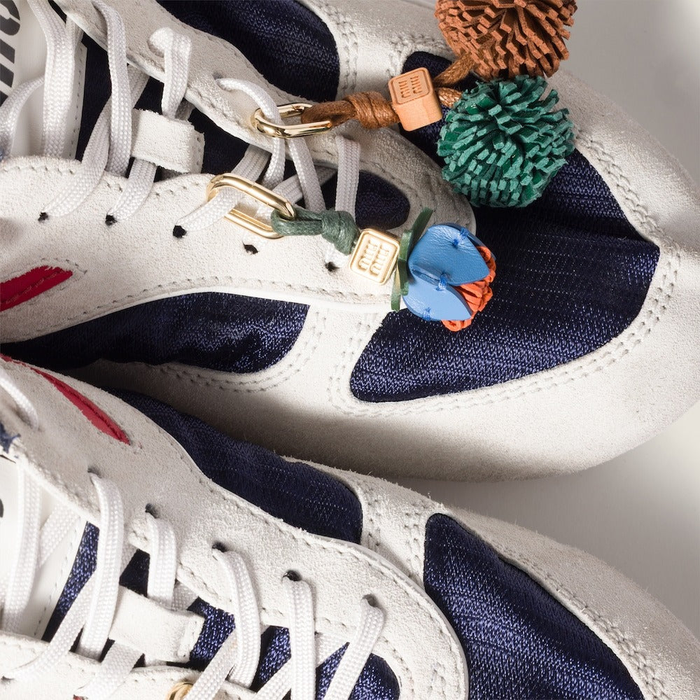 Miu Miu's elegant, playful character comes to life in this flower-inspired micro trick that enriches the silhouette of sneakers and bags, creating unique style combinations.