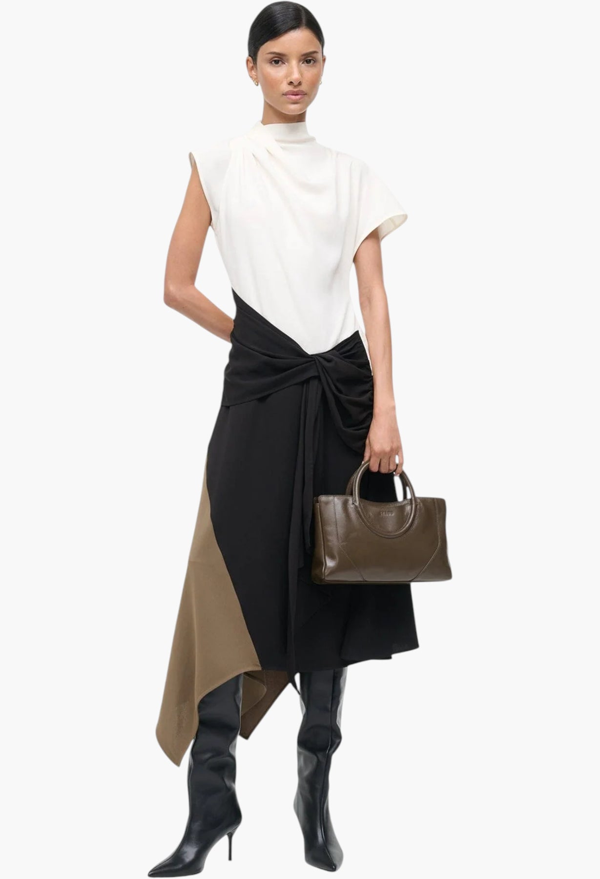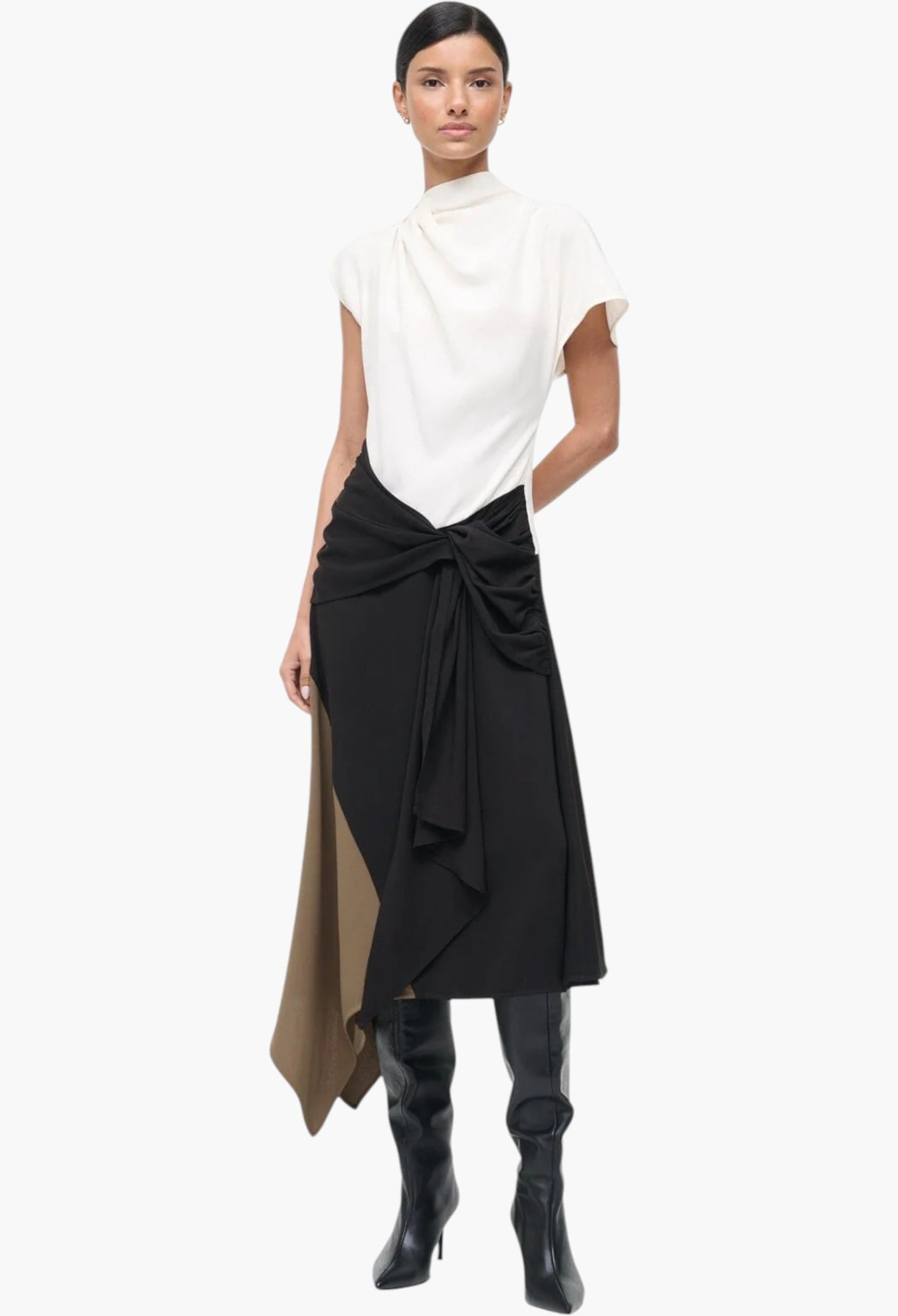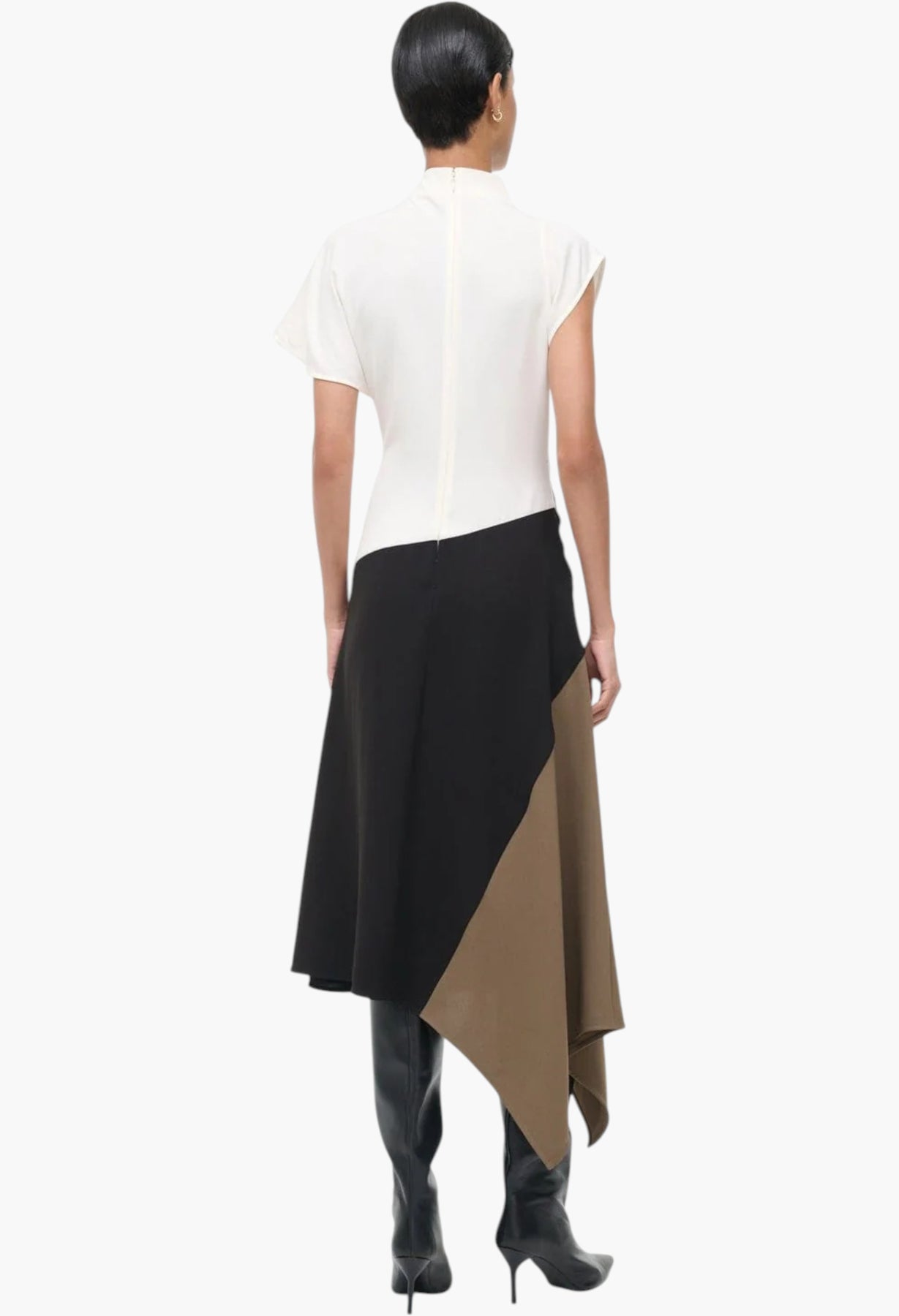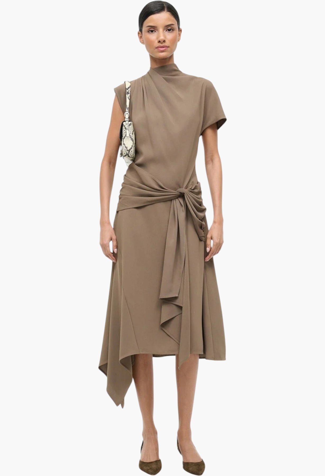 A draped asymmetrical dress featuring a handkerchief hem, the Davina is the perfect day-to-night transition style for the season. Featured in easy triacetate crepe.