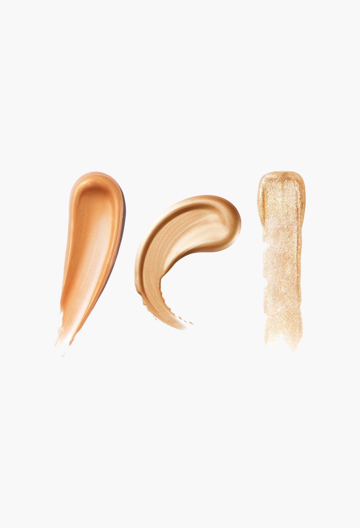 Our universal radiance primer Skin Nova is enriched with skin-loving ingredients such as Niacinamide and hydrating Beta-Glucan, so it can be worn alone or layered under makeup. Dial up the glow with Skin Dew, a golden-hour liquid highlighter that can be applied to the face and body.