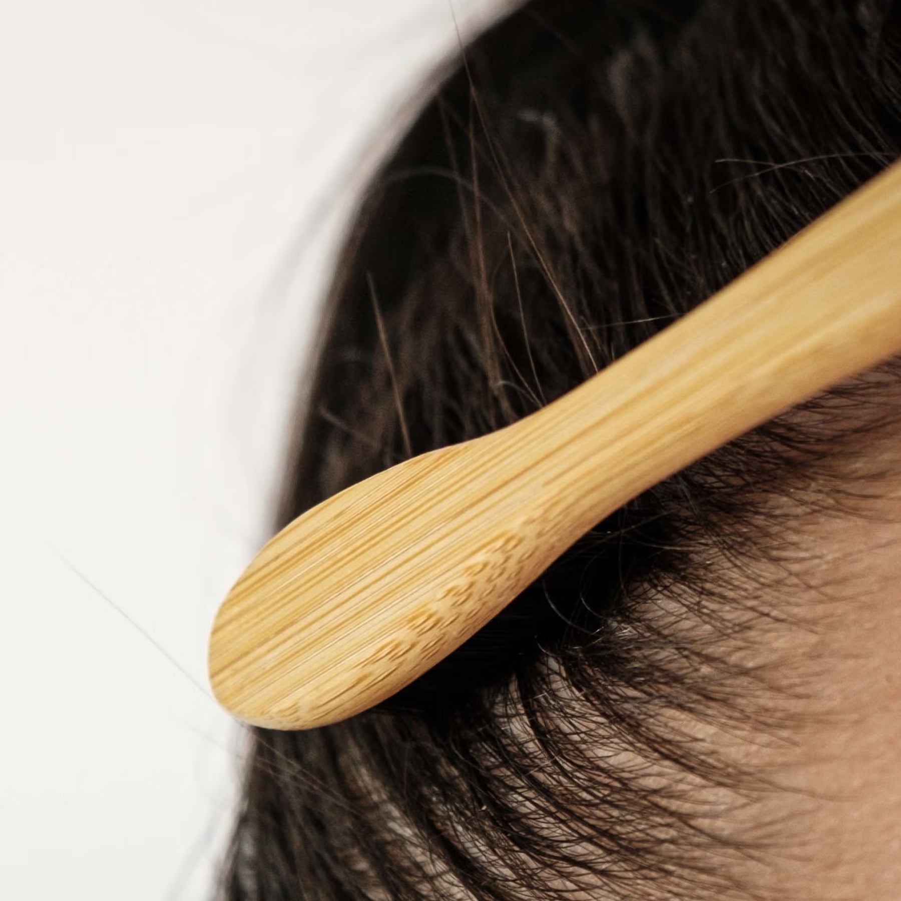 Dual-Ended Bamboo Brush and Comb Use to smooth baby hairs and flyaways, lay your edges or tidy up a sleek bun or ponytail.